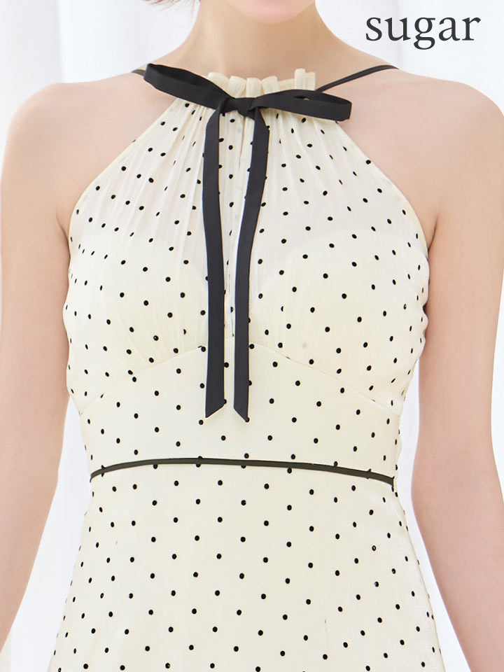 #キャバクラ #キャバ嬢 #キャバクラドレス #リボン #ドット #ホルターネック #サテン #ミニドレス