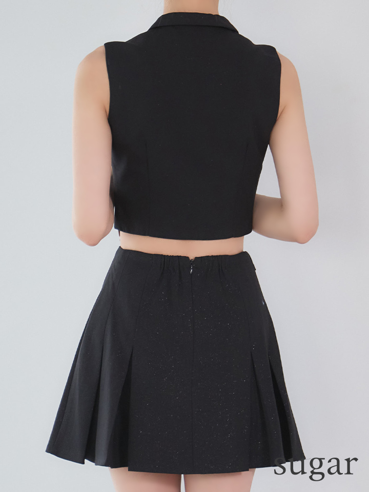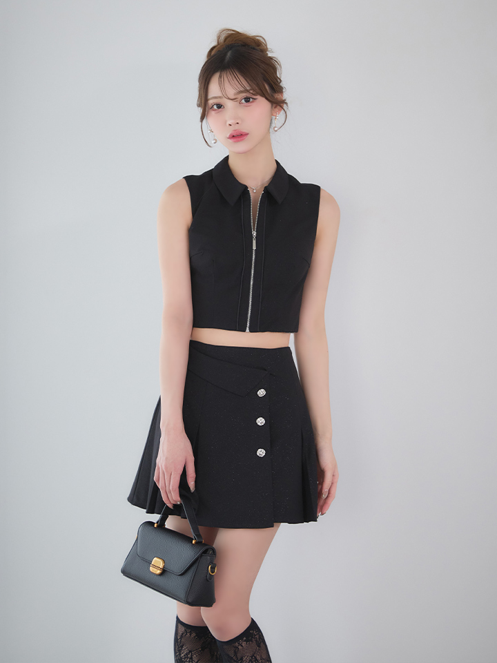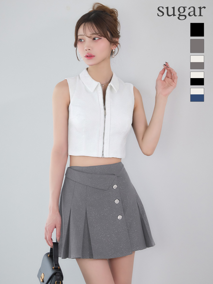 - > XSサイズあり【an /アン】 バイカラーあり/ ラメ/ ビジューボタン/ ノースリーブ/ ウエスト折り返し/ ボックスプリーツ/ バストジップ/ フレア/ セットアップ/ ミニドレス/ キャバドレス[OF05]