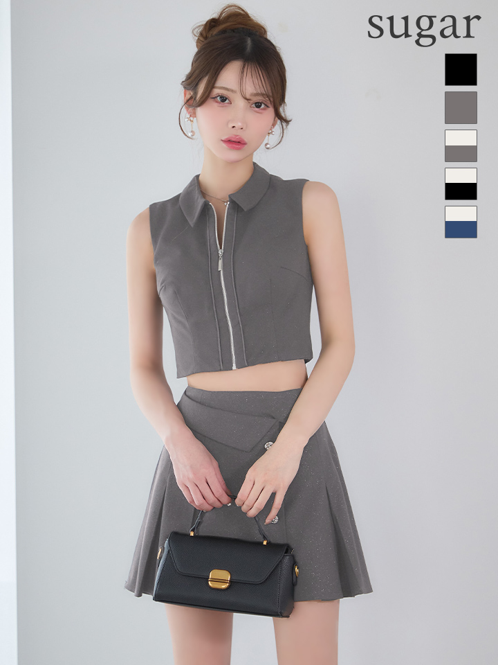 XSサイズあり【an /アン】 バイカラーあり/ ラメ/ ビジューボタン/ ノースリーブ/ ウエスト折り返し/ ボックスプリーツ/ バストジップ/ フレア/ セットアップ/ ミニドレス/ キャバドレス[OF05] [AOC4063-GY-S260323]