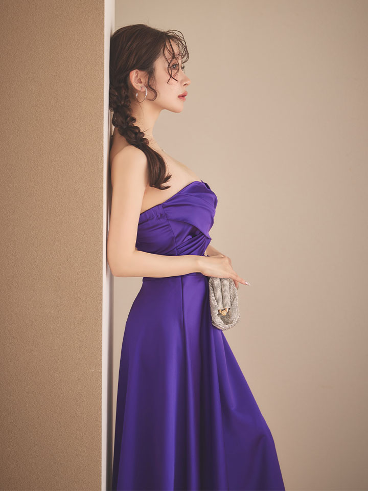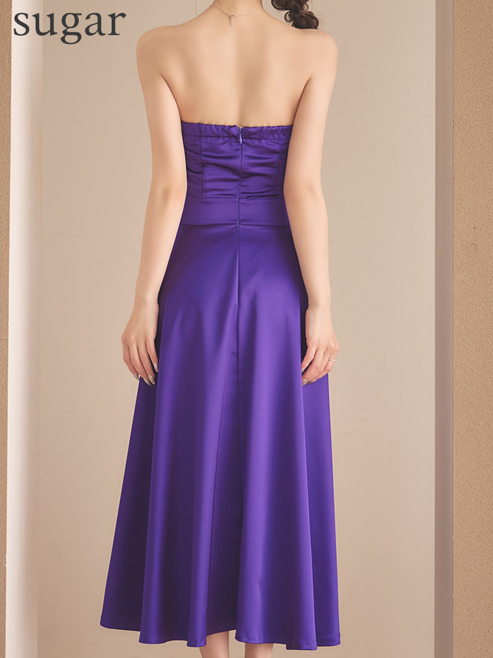 - > XSサイズあり【ANDY/アンディ】シンプル/ ワンカラー/ ベア/ バストクロス/ ウエストカット/ Aライン/ ミモレ丈/ フレア/ ミディアムドレス/ キャバドレス[OF05]