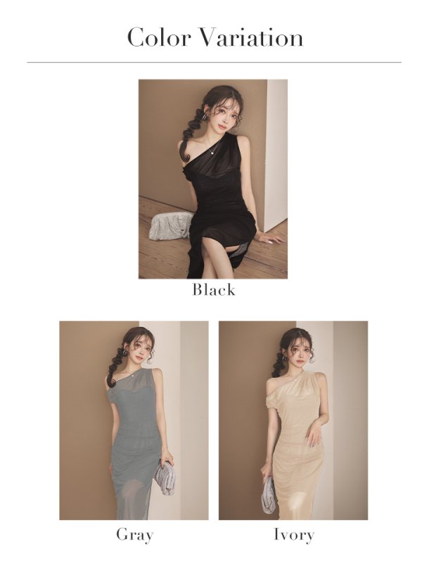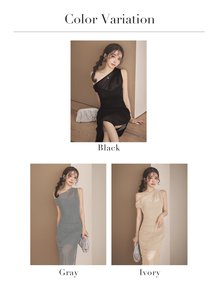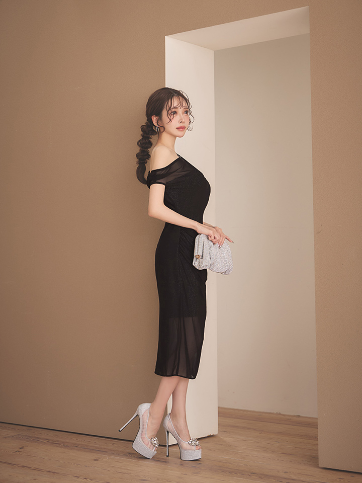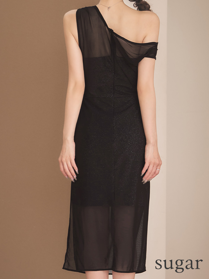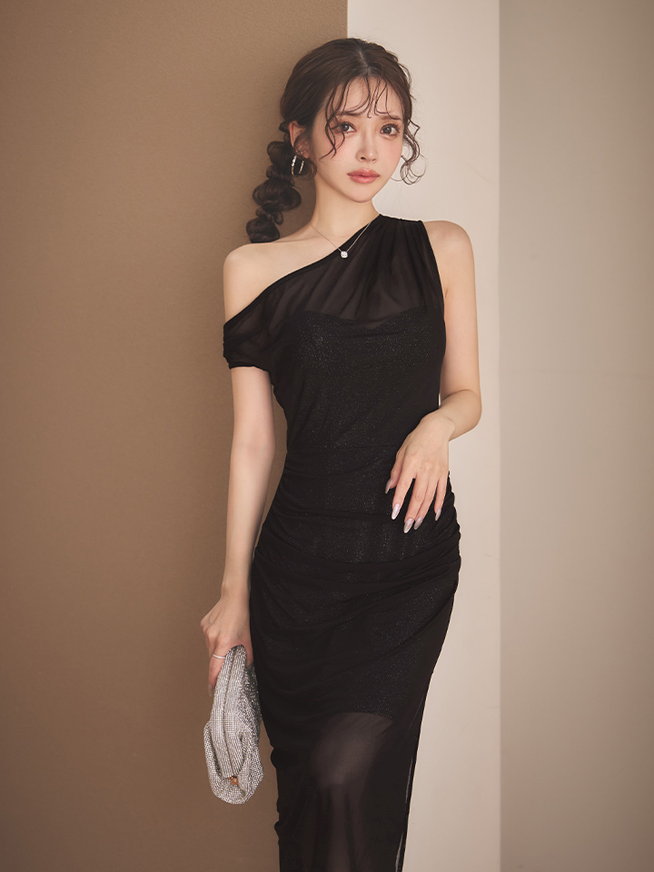 - > XSサイズあり【Veautt/ヴュート】ワンショルダー/ シアー/ メッシュ/ スリット/ タイト/ ミディアムドレス/ キャバドレス【OF05】