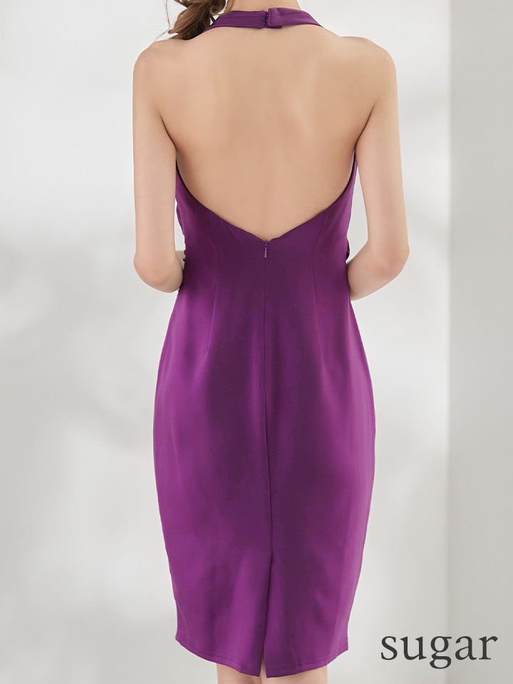 大胆に開いたバックデザインが背中のラインを引き立て、後ろ姿まで抜かりない印象に。