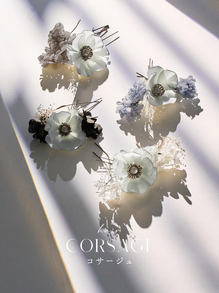 清楚感あふれるデザインが魅力の上品なコサージュセット。