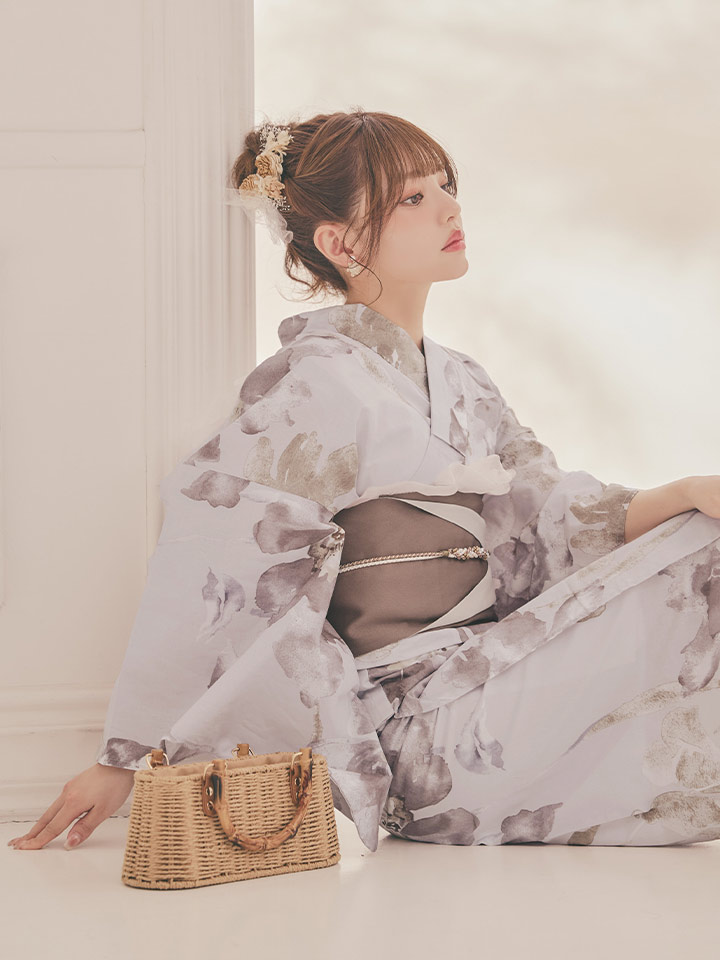 落ち着いたニュアンスカラーが浴衣やヘアスタイルをより華やかに引き立てます。