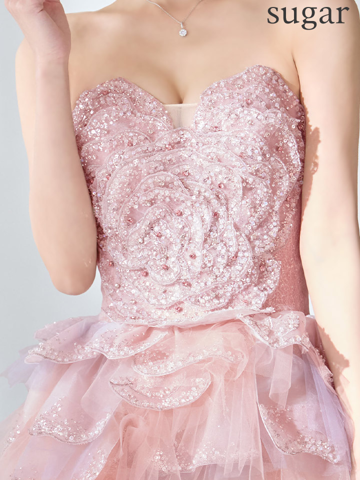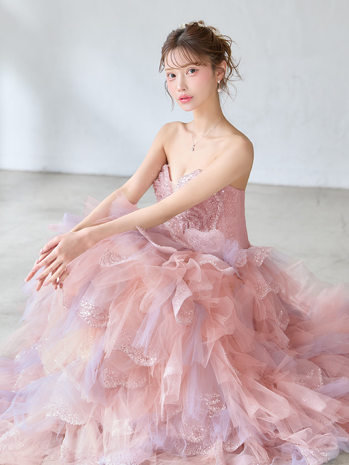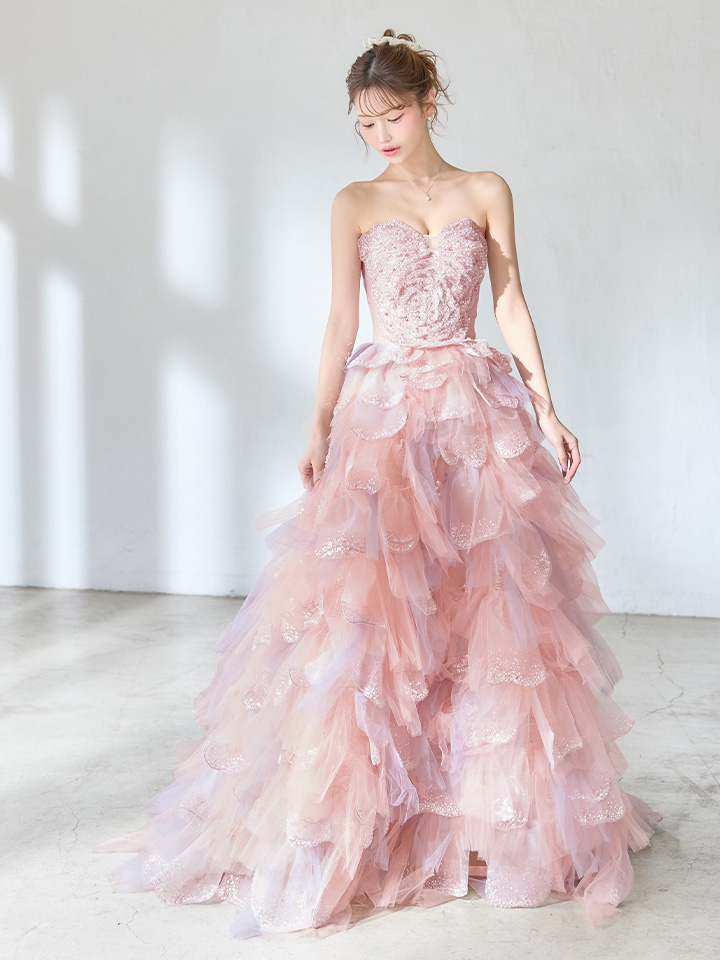 まるでお花を纏ったようにロマンティックなプリンセスロングドレス。