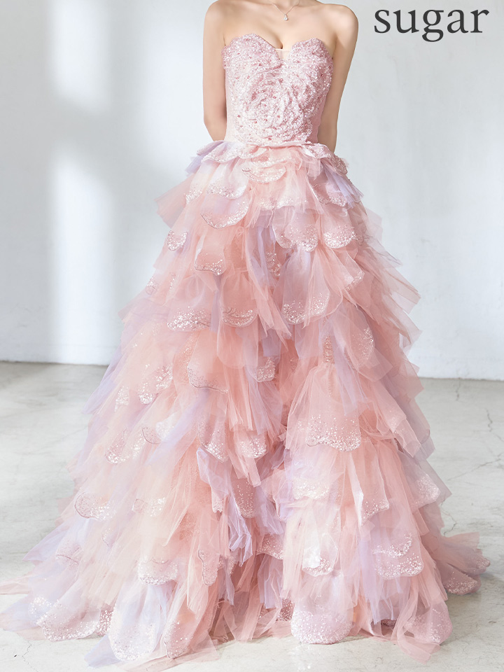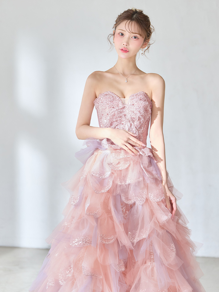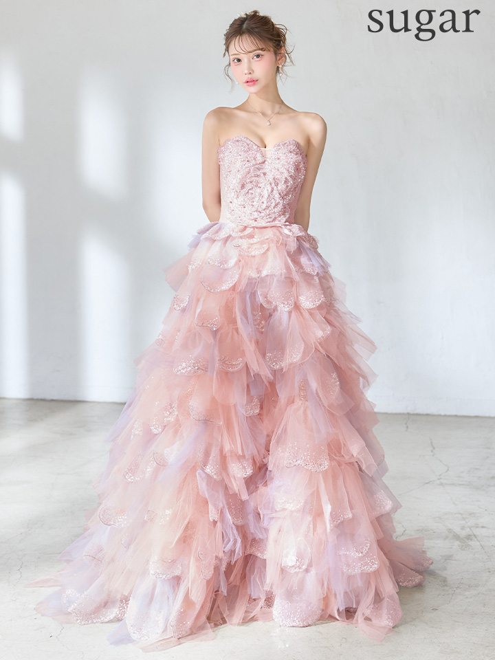 【couture an/クチュールアン】立体フラワーレース/ チュール/ ティアードフリル/ グラデーション/ ビジュー/ スパンコール/ フレア/ プリンセス/ カラードレス/ ロングドレス/ キャバドレス long[OF05] [AOC-WD-063-P-S260327]