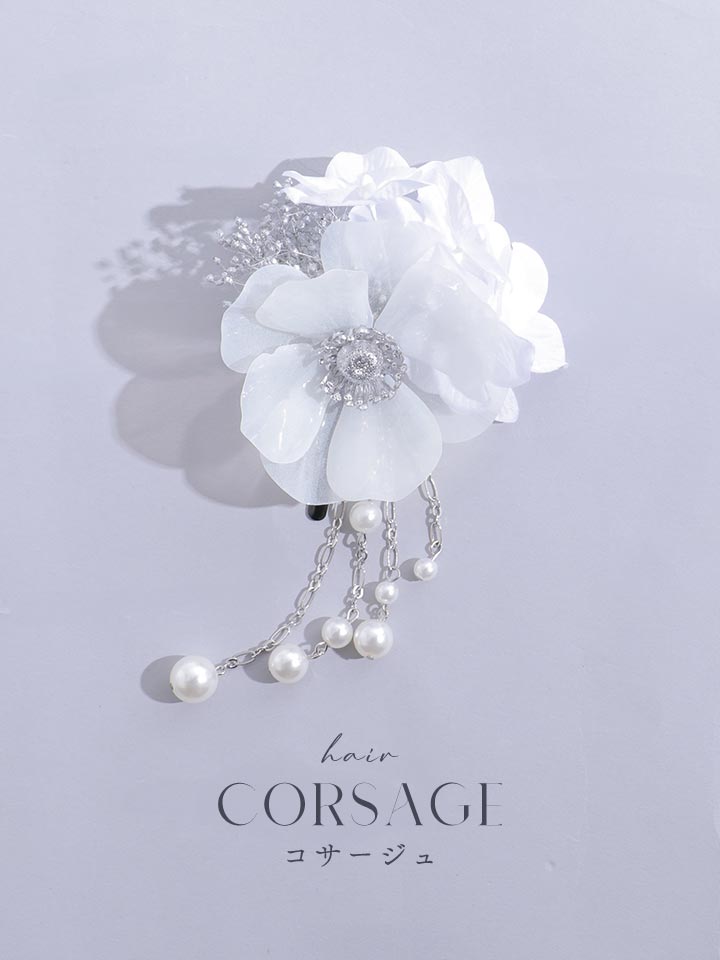 透明感のあるクリアフラワーと、上品に輝くパールをあしらった