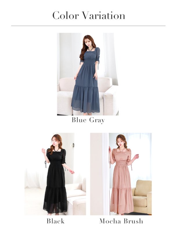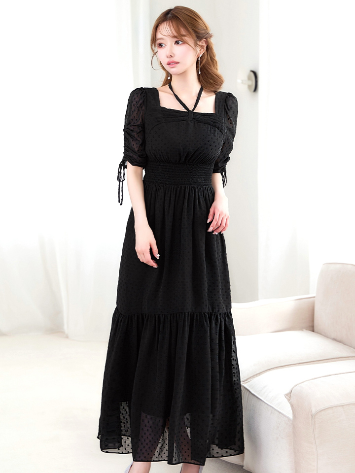 XLサイズあり【AMORA GRACE / アモーラグレース】 オケージョンドレス/ パーティードレス/ お呼ばれドレス/ ドット/ ハーフスリーブ/ ドロスト/ ギャザー/ フレア/ ミモレ丈/ ワンピース/ ミディアムドレス/ キャバドレス[OF05] [G60256HL-B-S2603]
