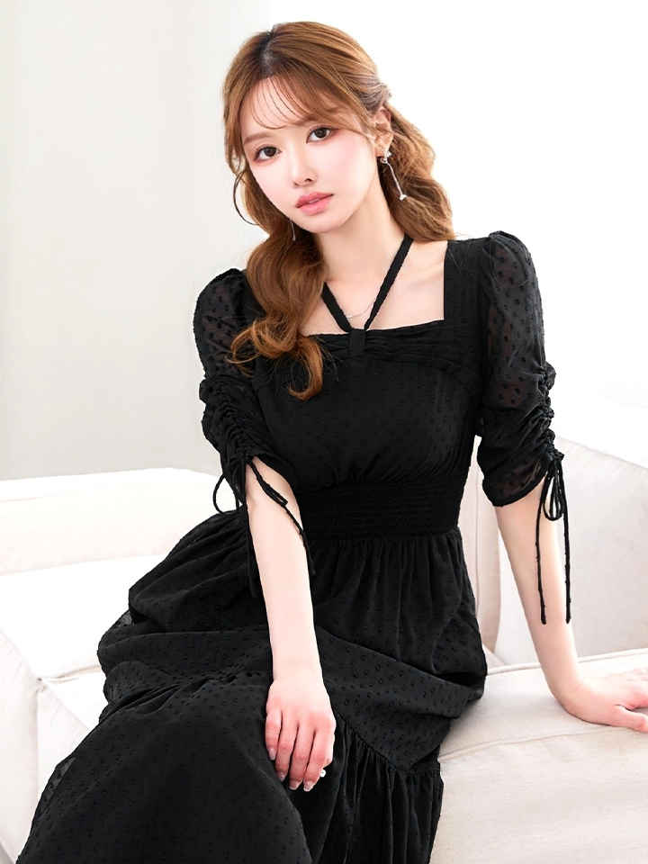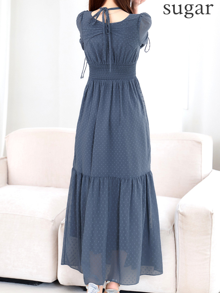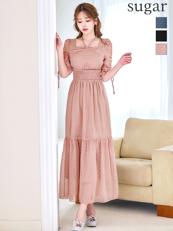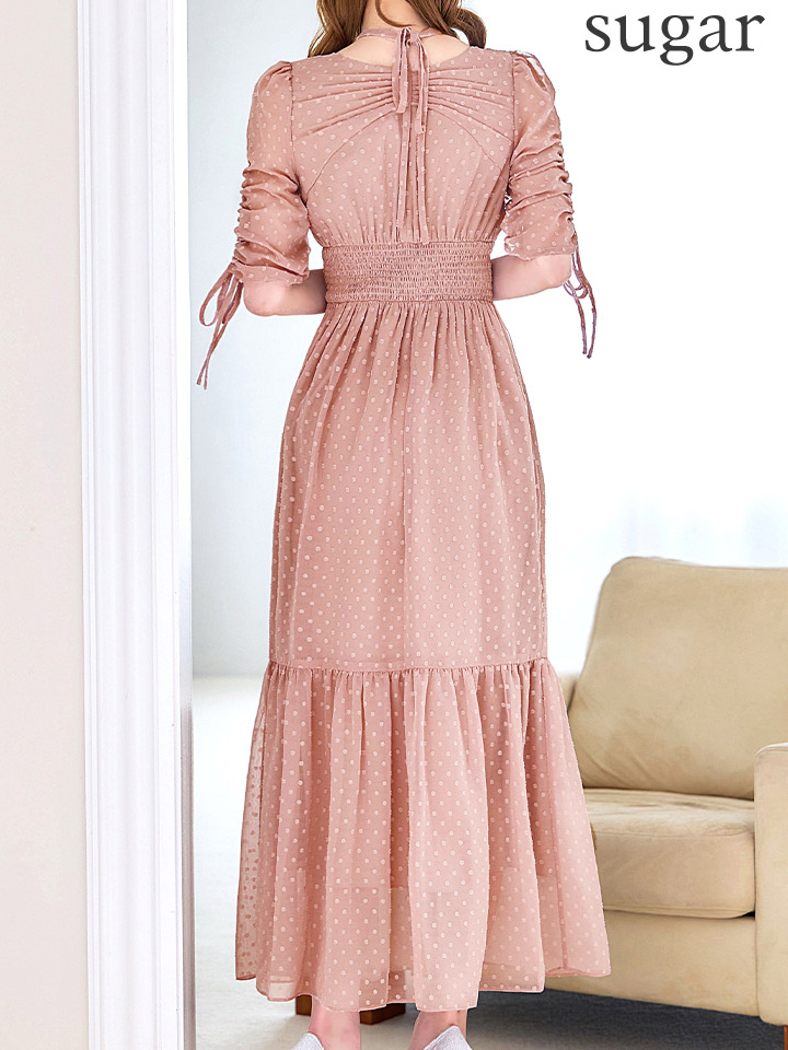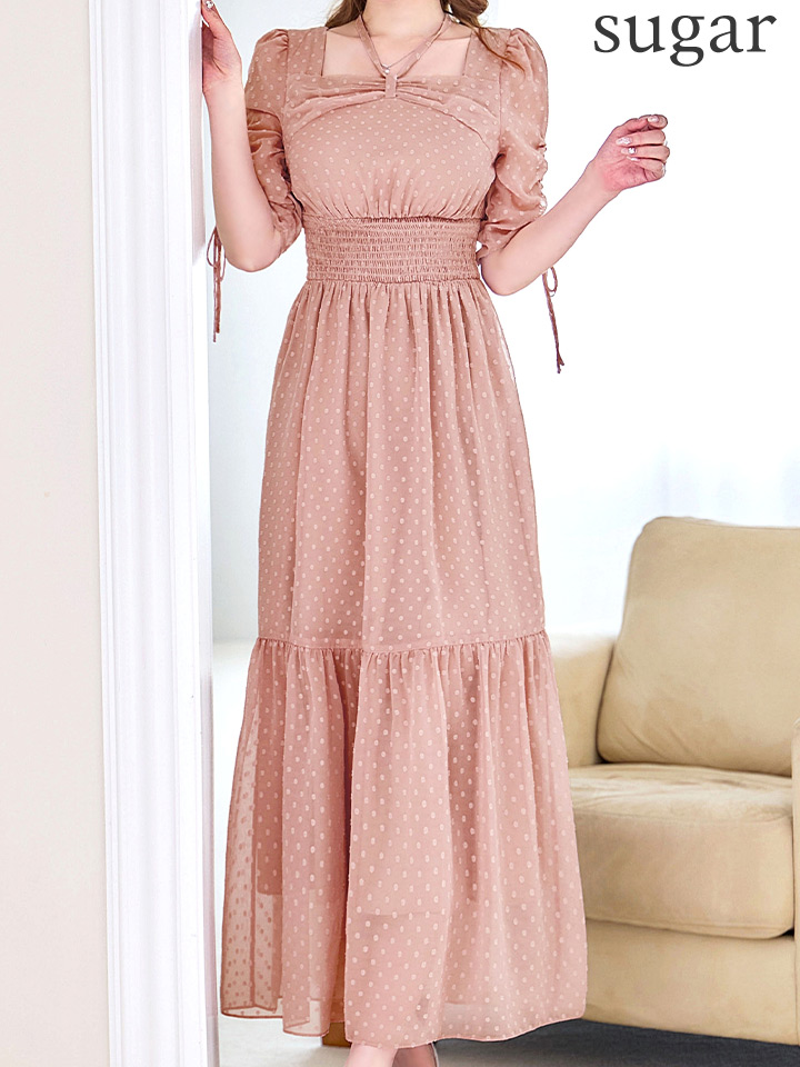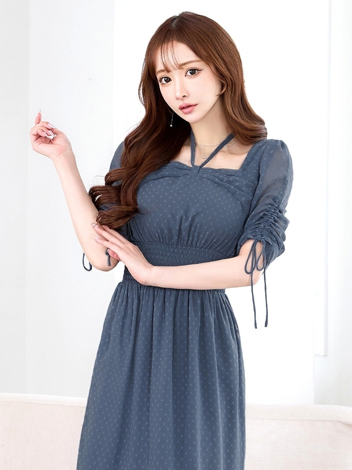 さりげないドットデザインが可憐な印象を与えるミディアムドレス♡