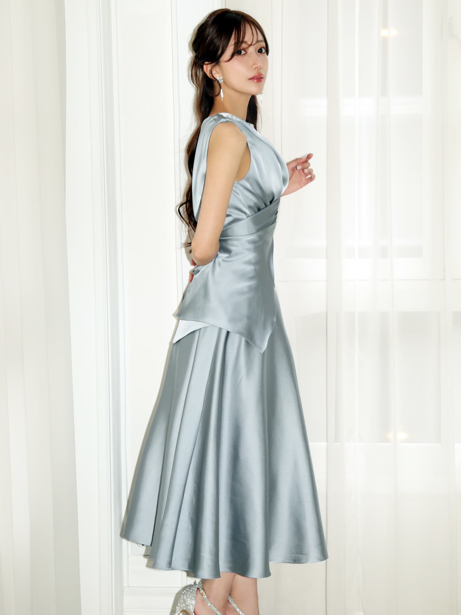 上品な光沢感が魅力のサテン素材を使用した、洗練されたセパレートドレス。