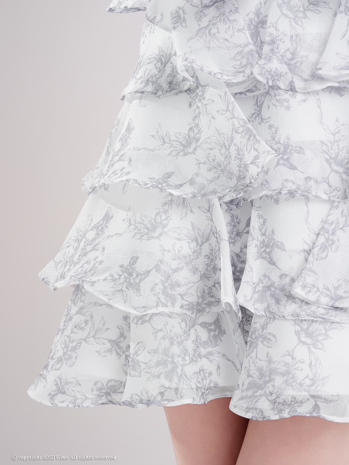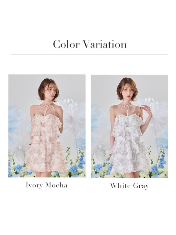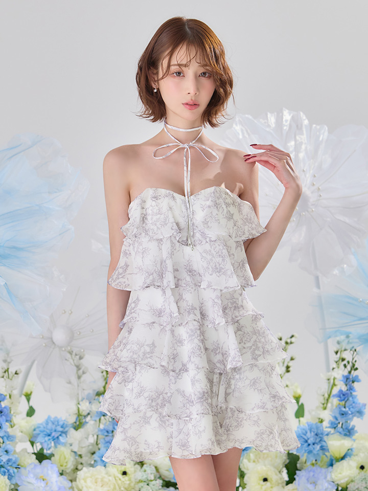 XSサイズあり【an/アン】リボンチョーカー付き/ シフォン/ ティアード/ 花柄/ フリル/ フレア/ Aライン/ ベア/ ミニドレス/ キャバドレス[OF05] [AOC4105-WxGY-S260401-CC]