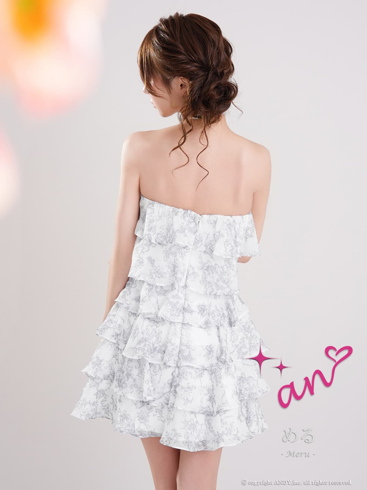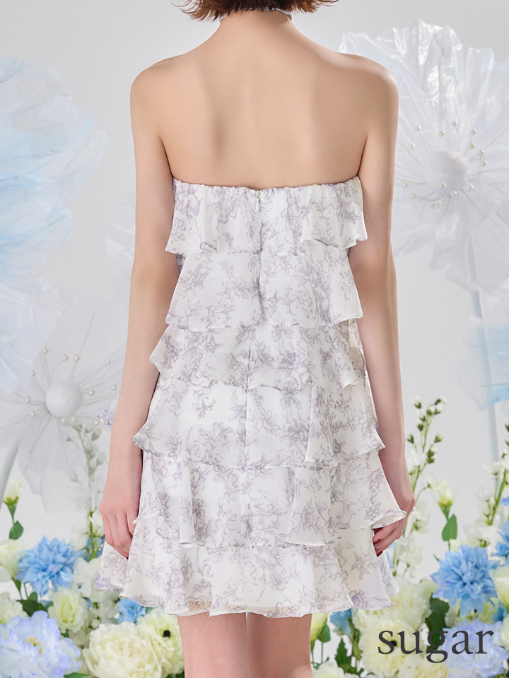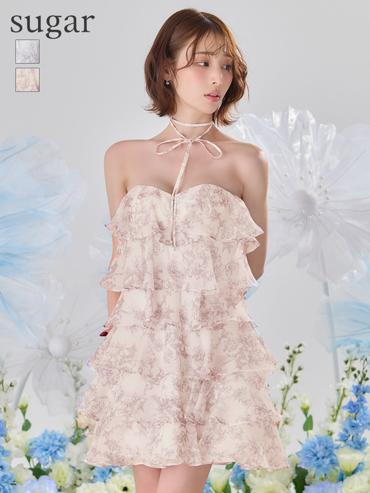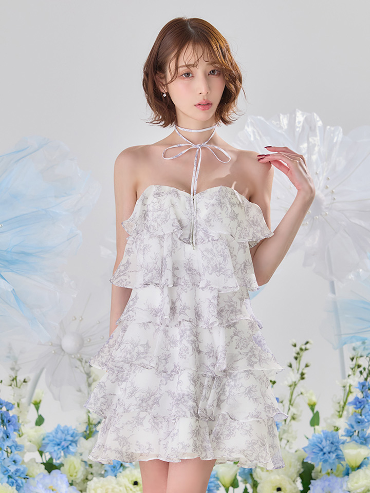 - > XSサイズあり【an/アン】リボンチョーカー付き/ シフォン/ ティアード/ 花柄/ フリル/ フレア/ Aライン/ ベア/ ミニドレス/ キャバドレス[OF05]