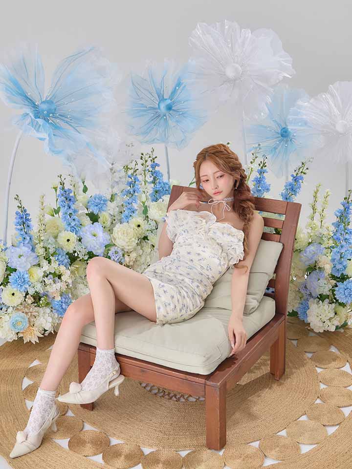 バストラインはボリュームのあるフリルでワンショルにも