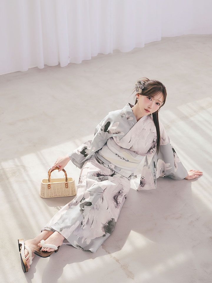 送料無料!グレイッシュフラワー浴衣【浴衣3点セット 浴衣/帯/下駄】[OF04]【予約 / 4月上旬発送予定】