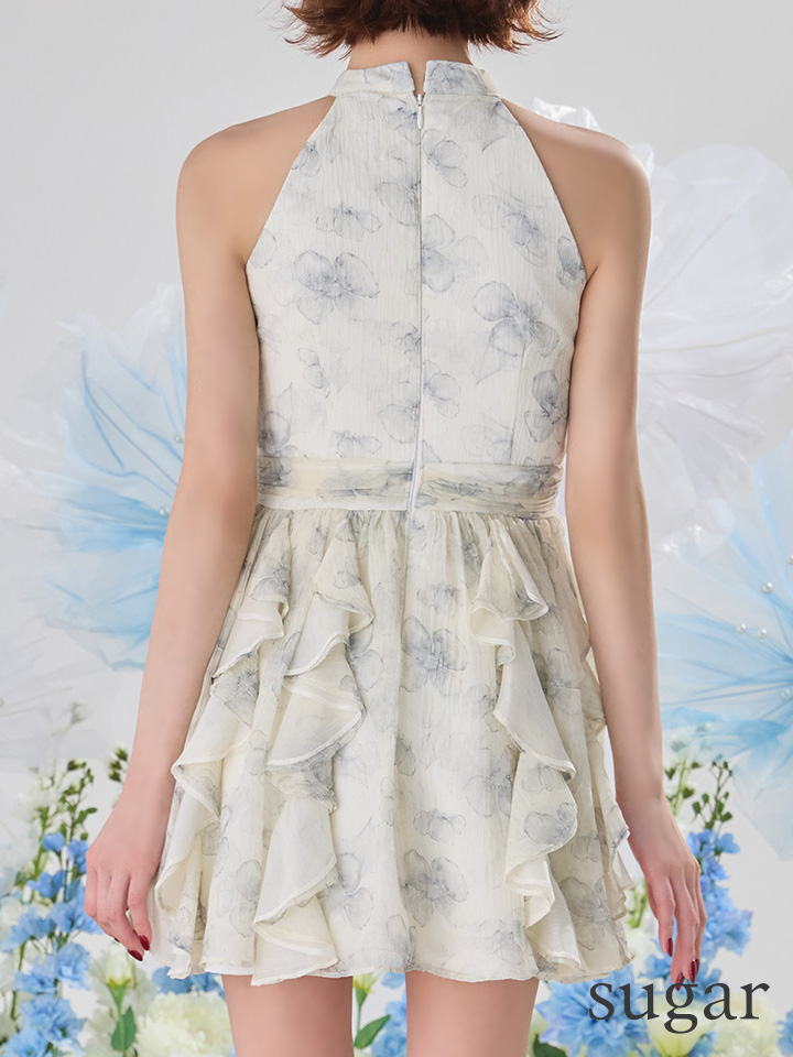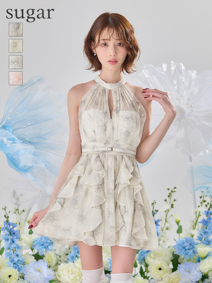 XSサイズあり【ROBE de FLEURS/ローブドフルール】フラワー/ シフォン/ ホルター/ フレア/ ミニドレス/ キャバドレス[OF08]
