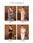 肩のリボンディテールが視線を集め、シンプルながらも印象に残るエレガントな一着です。