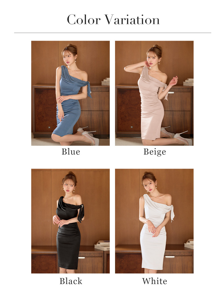 - > 【予約商品/4月中旬-4月下旬発送予定】XSサイズあり【Veautt/ヴュート】ワンショルダー/ ショルダーリボン/ ビジュー/ タイト/ ミディアムドレス/ キャバドレス[OF05]