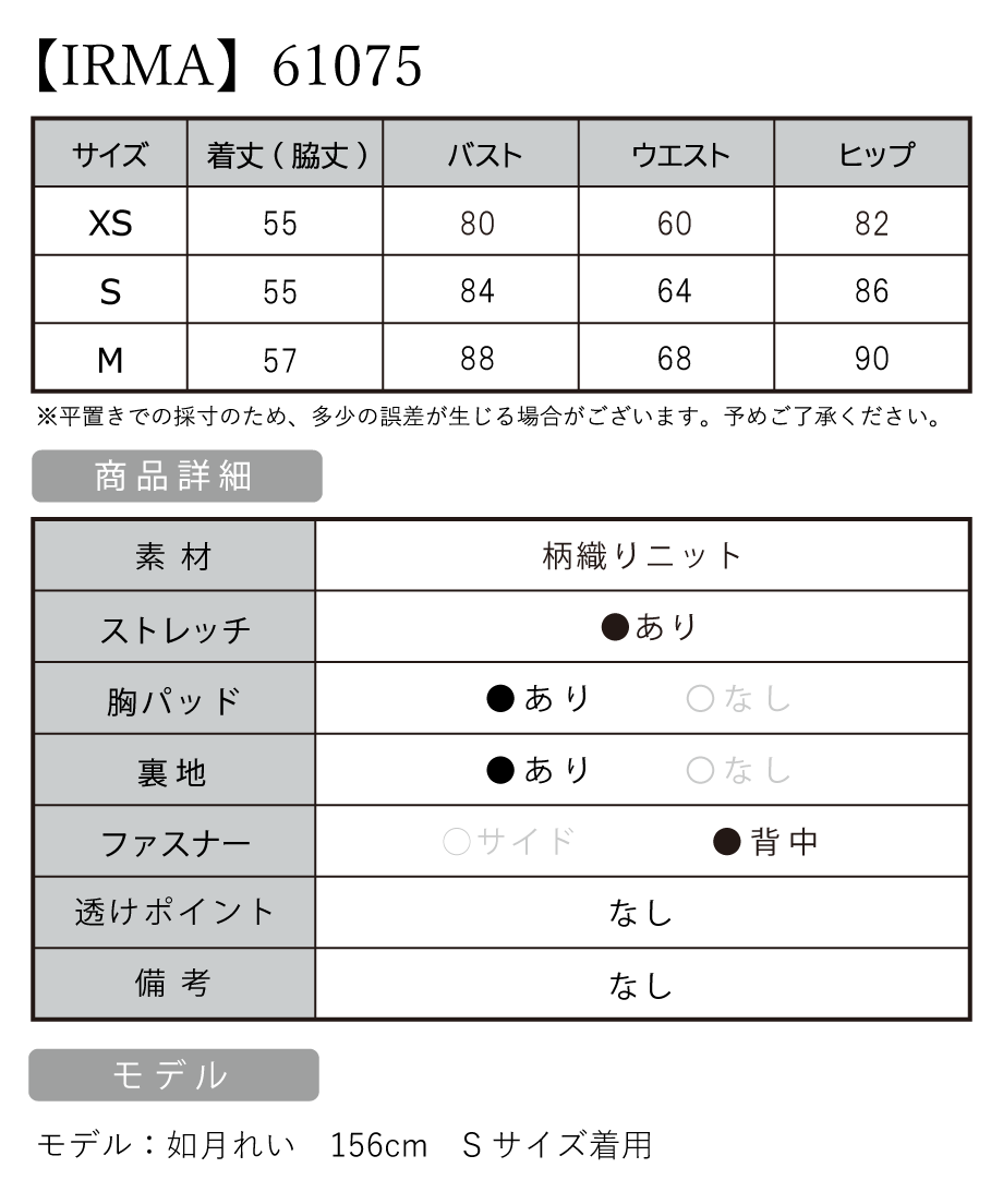 【予約商品/4月上旬発送予定】XSサイズあり【IRMA/イルマ】ストレッチ/ ビジュー/ リボン/ キャミソール/ 柄織りニット/ 台形スカート/ フレア/ ミニドレス/ キャバドレス[OF2A] [61075-IR-BW-2604]