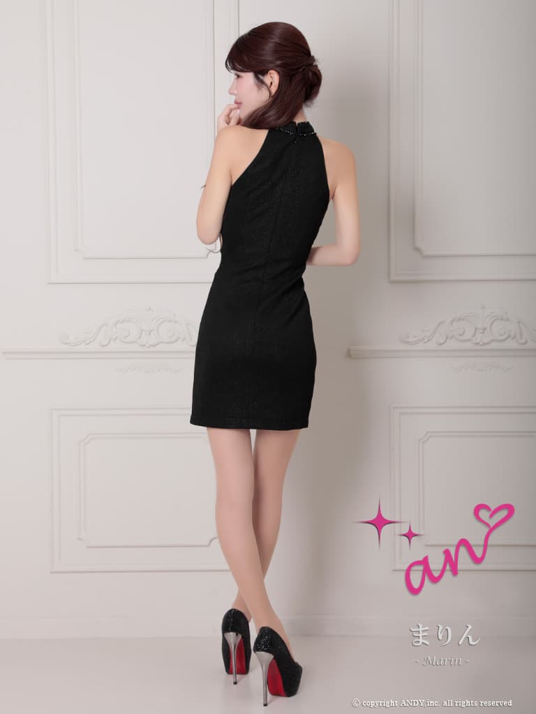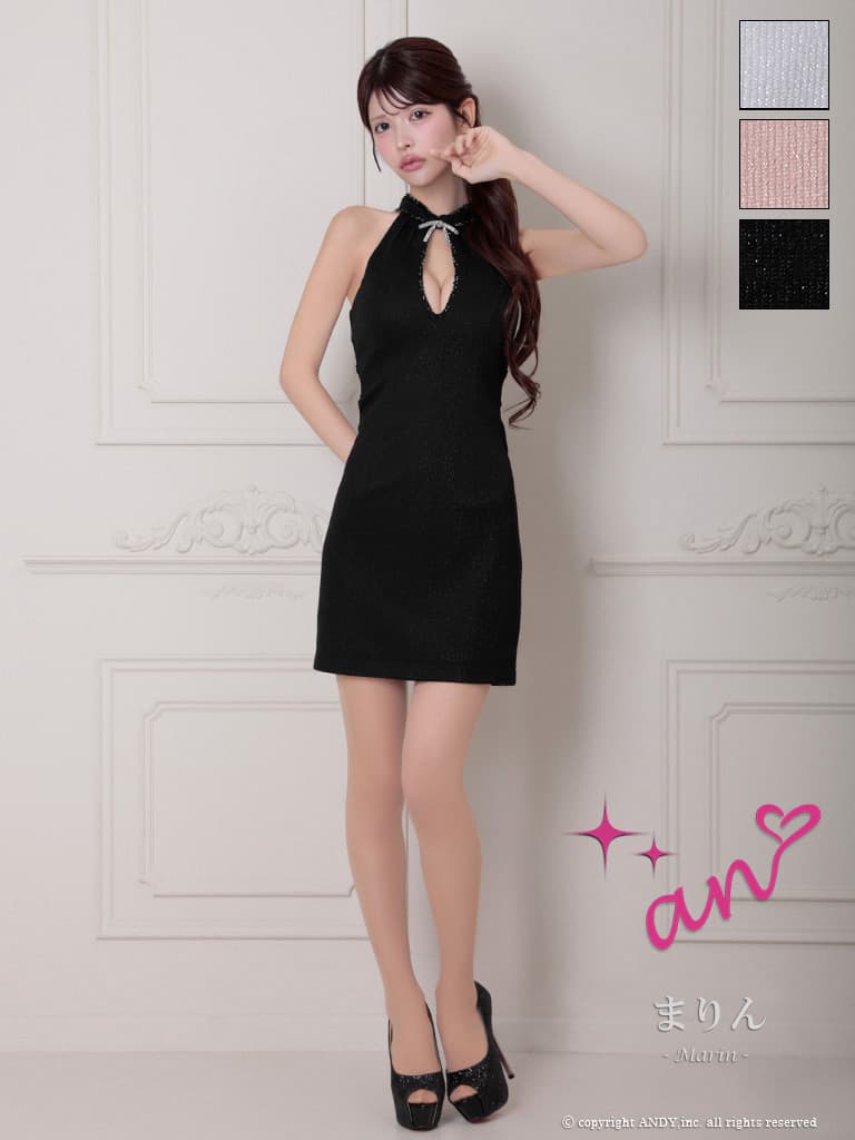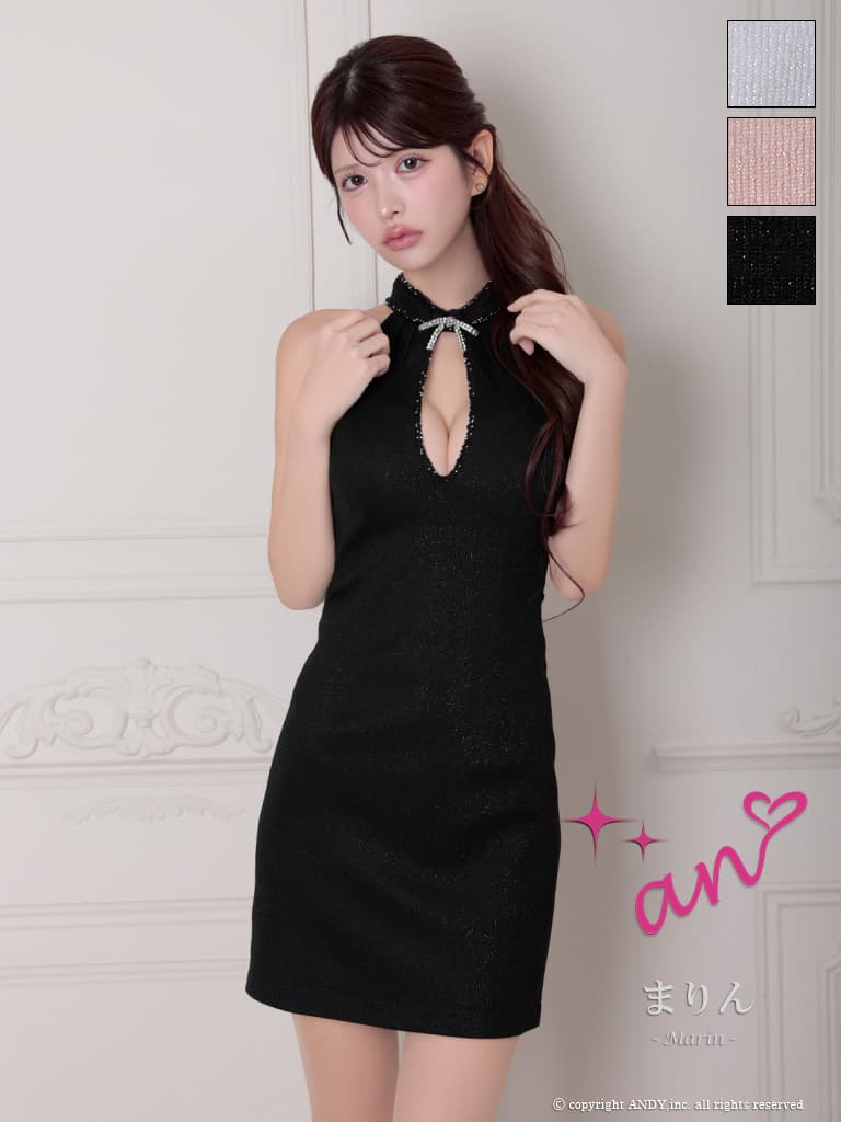 XSサイズあり【an/アン】リボンブローチ付き/ サイドカット/ アメスリ/ ビーズ/ ラメ/ バストカット/ ストレッチ/ タイト/ ミニドレス/ キャバドレス[OF05] [AOC4112-B-2604]