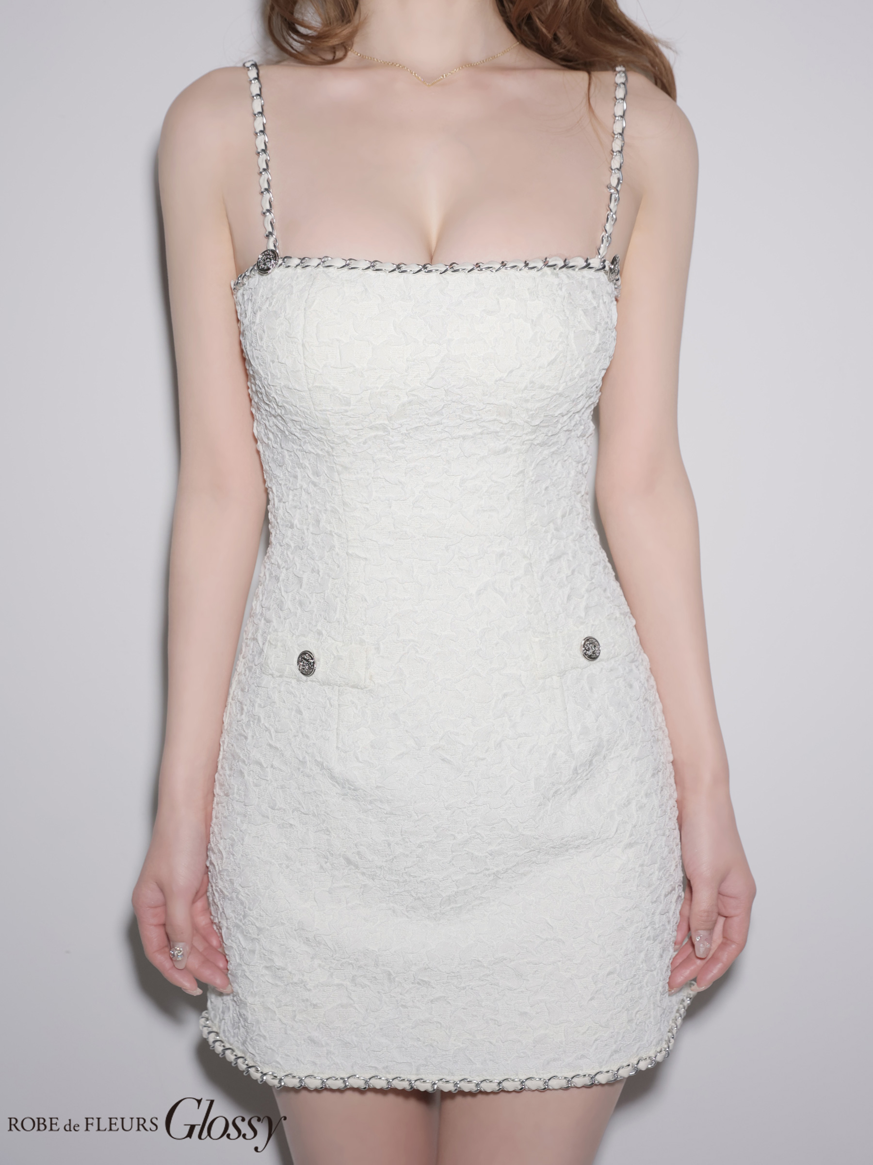 - > XSサイズあり【Glossy/グロッシー】ジャガード/ ラインチェーン/ キャミソール/ タイト/ ミニドレス/ キャバドレス[OF08]