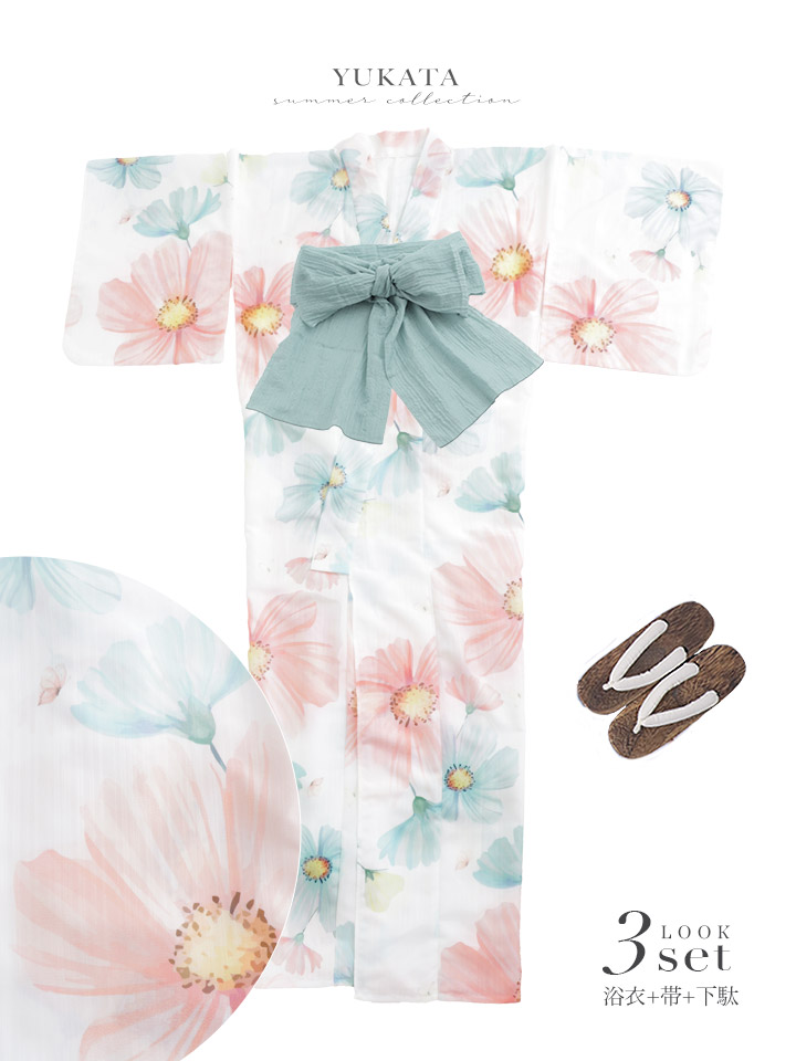 送料無料!MIXフローラ浴衣【浴衣3点セット 浴衣/帯/下駄】[OF04]【予約 / 4月下旬発送予定】 [Y-9431-nz-dzm-P-F-26MC-260405-1]