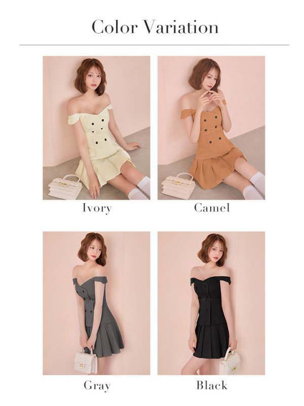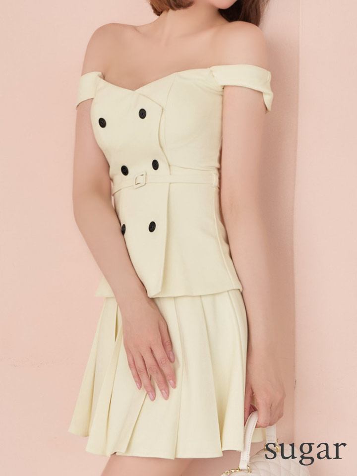 - > XSサイズあり【DEA./ディア】オフショル/ ダブルボタン/ セットアップ/ フレア/ ミニドレス/ キャバドレス[OF08]