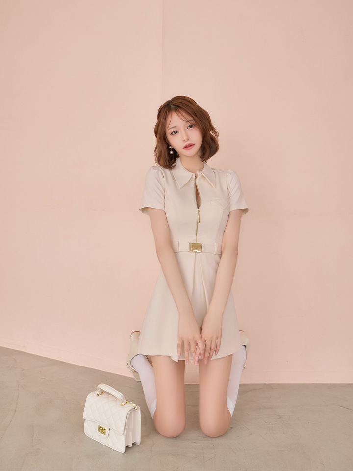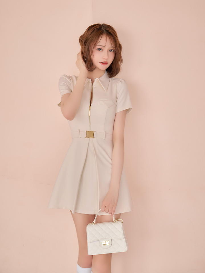 XS-Lサイズあり【Glossy/グロッシー】シャツカラー/ ウエストベルト/ フレア/ ミニドレス/ キャバドレス[OF08] [GL4617-IV-S260403]
