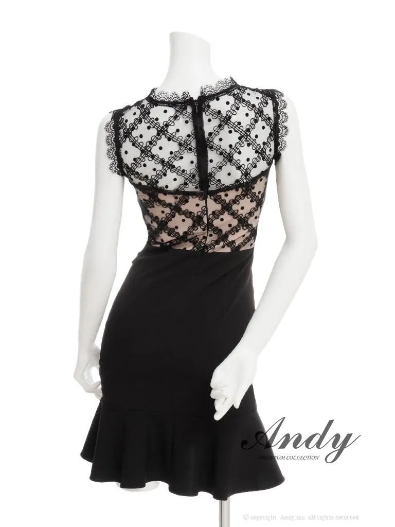 【ANDY/アンディ】バストカットアウト/ ノースリーブ/ シアーレース/ 重ね着風/ チェック柄/ ドット/ 裾フリル/ マーメイド/ ミニドレス/ キャバドレス[OF05] [ON3077-WB-2604]