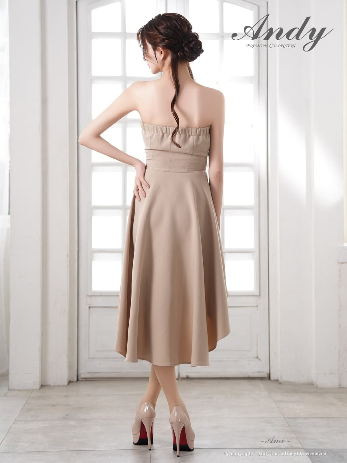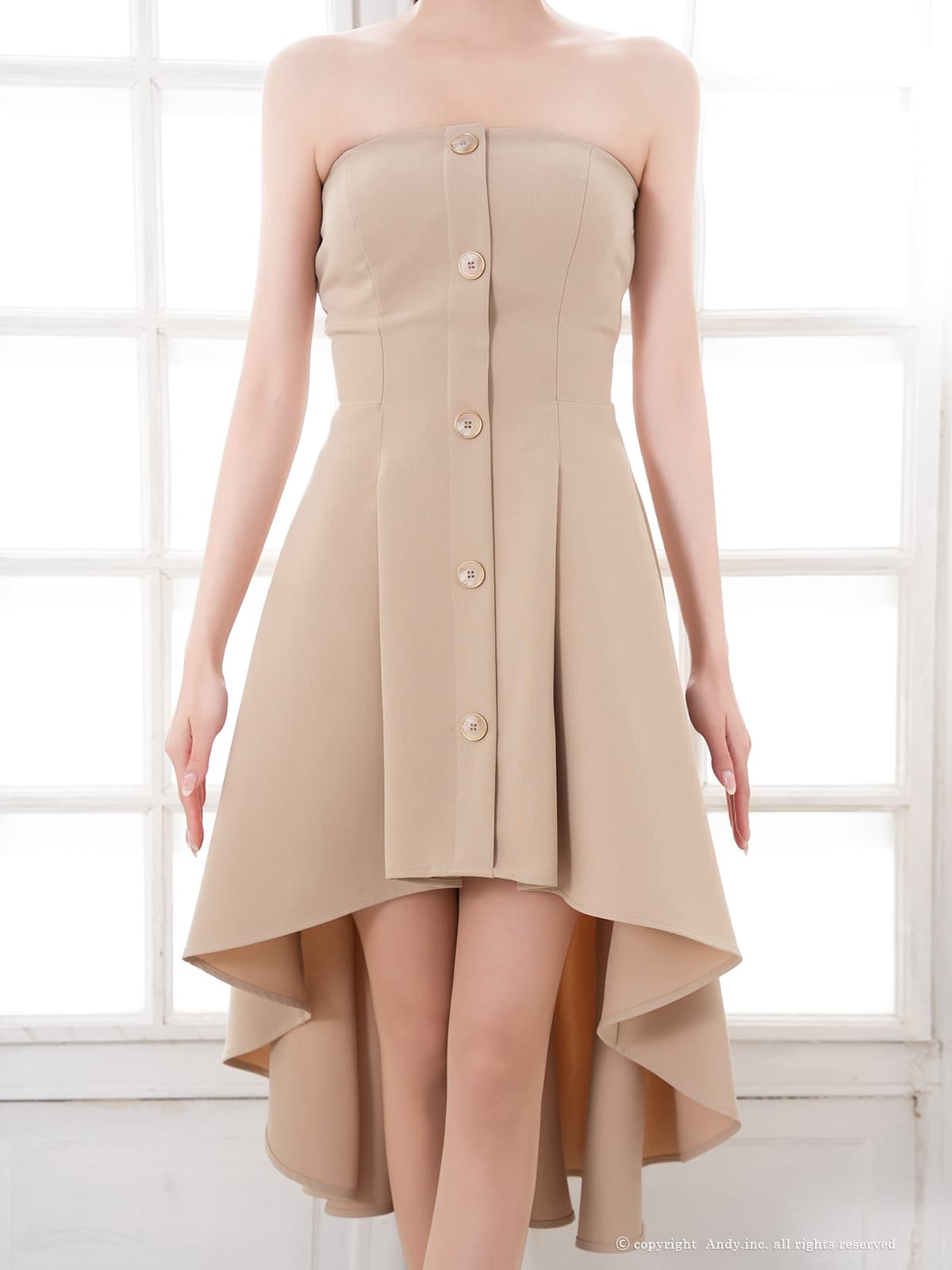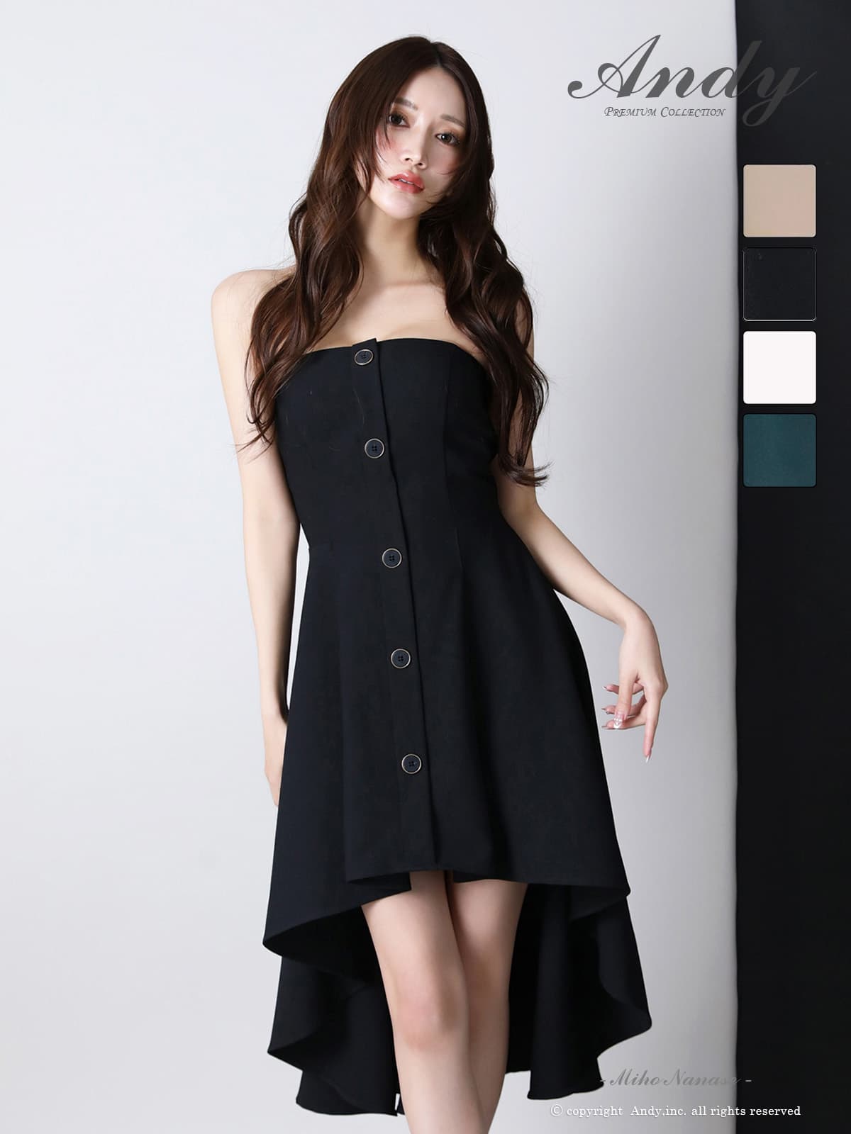 - > XSサイズあり【ANDY/アンディ】フロントボタン/ ワンカラー/ ベア/ テールカット/ Aライン/ ミモレ丈/ フレア/ ワンピース/ ミディアムドレス/ キャバドレス[OF05]