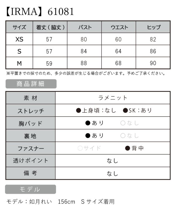 B:84 / W:64 / H:86 [着丈](脇下)約57cm |
