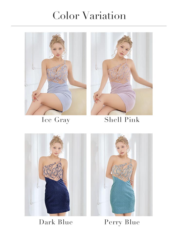XSサイズあり【IRMA/イルマ】グリッター/ ラメ/ ビジュー/ 刺繍/ ワンショルダー/ バストカットアウト/ シアー/ タイト/ ミニドレス/ キャバドレス[OF2A] [61080-IR-IrisGY-S260407]