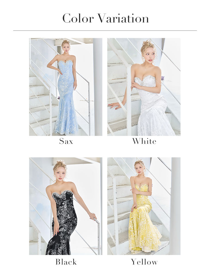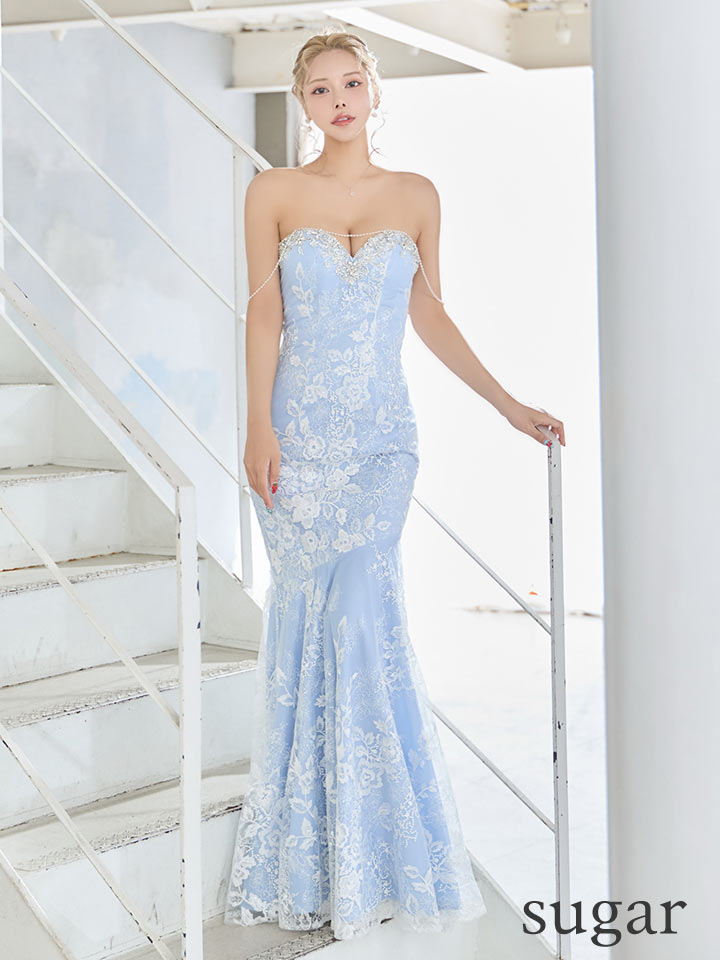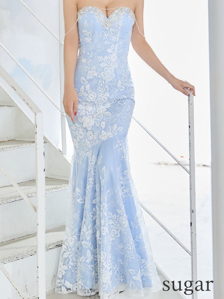 上品なレースをふんだんに使用した、高級感溢れるタイトロングドレス。