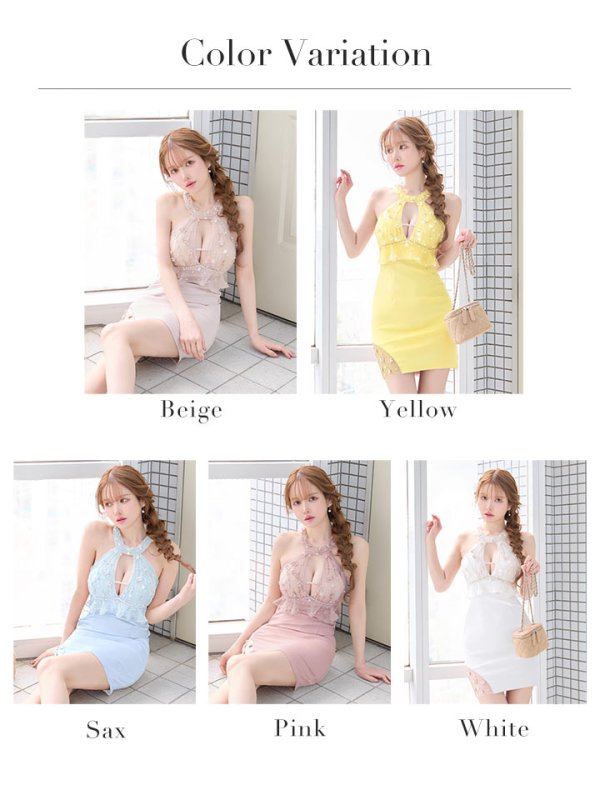 - > XSサイズあり【ANGEL R/エンジェルアール】ホルターネック/ バストレース/ フラワー/ フリル/ ビジュー/ タイト/ ミニドレス/ キャバドレス[OF2]【一部予約商品/4月中旬-4月下旬発送予定】