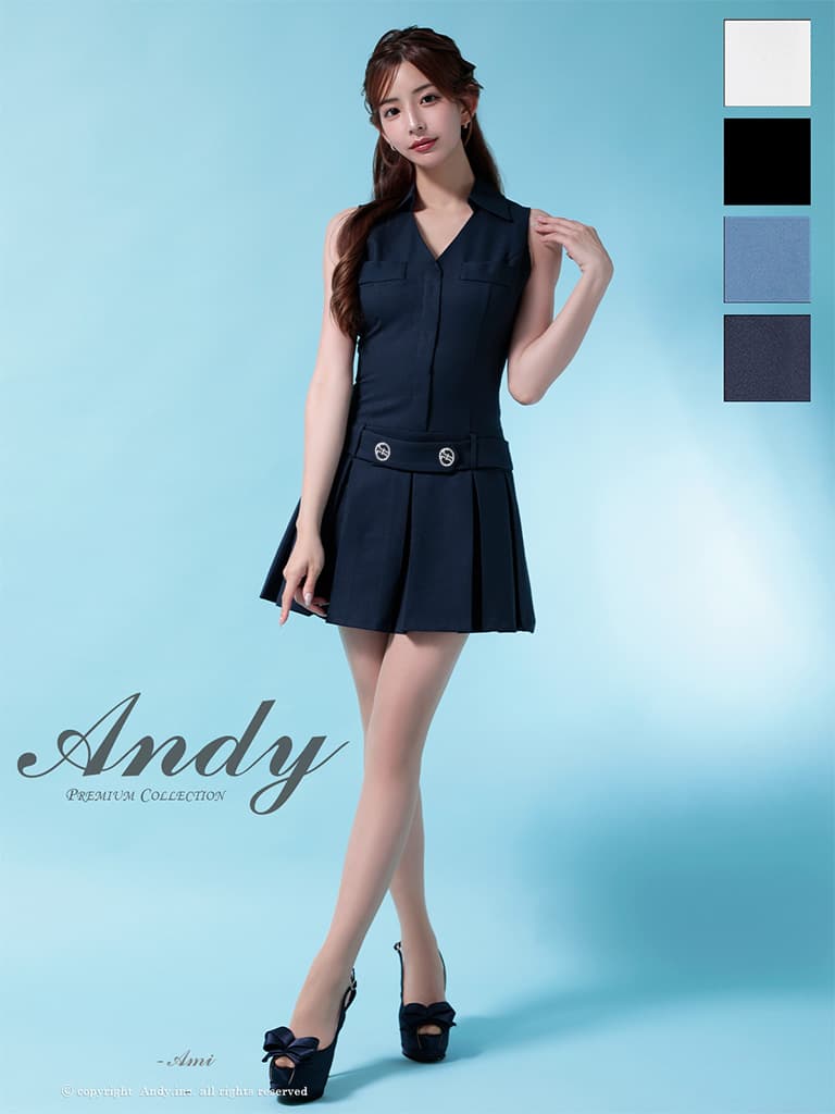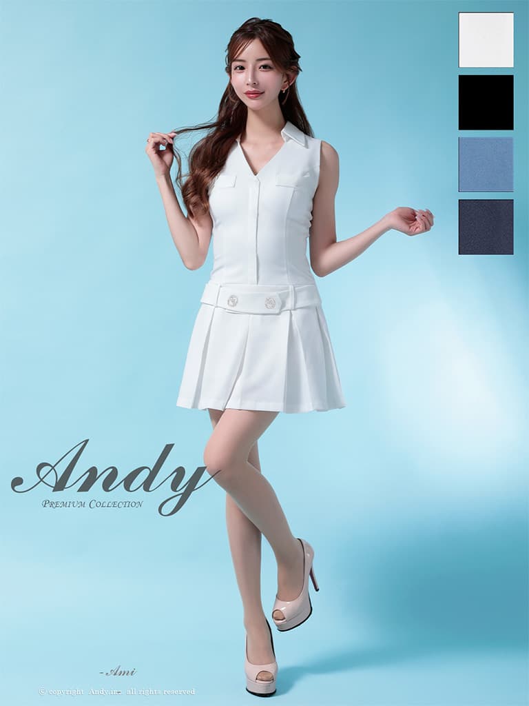 - > XSサイズあり【ANDY/アンディ】襟付き/ Vネック/ ノースリーブ/ ボタン/ ボックスプリーツ/ Aライン/ フレア/ ミニドレス/ キャバドレス[OF05]