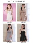 胸元のギャザーとちびリボンが色っぽさの中に可愛さをプラスし、