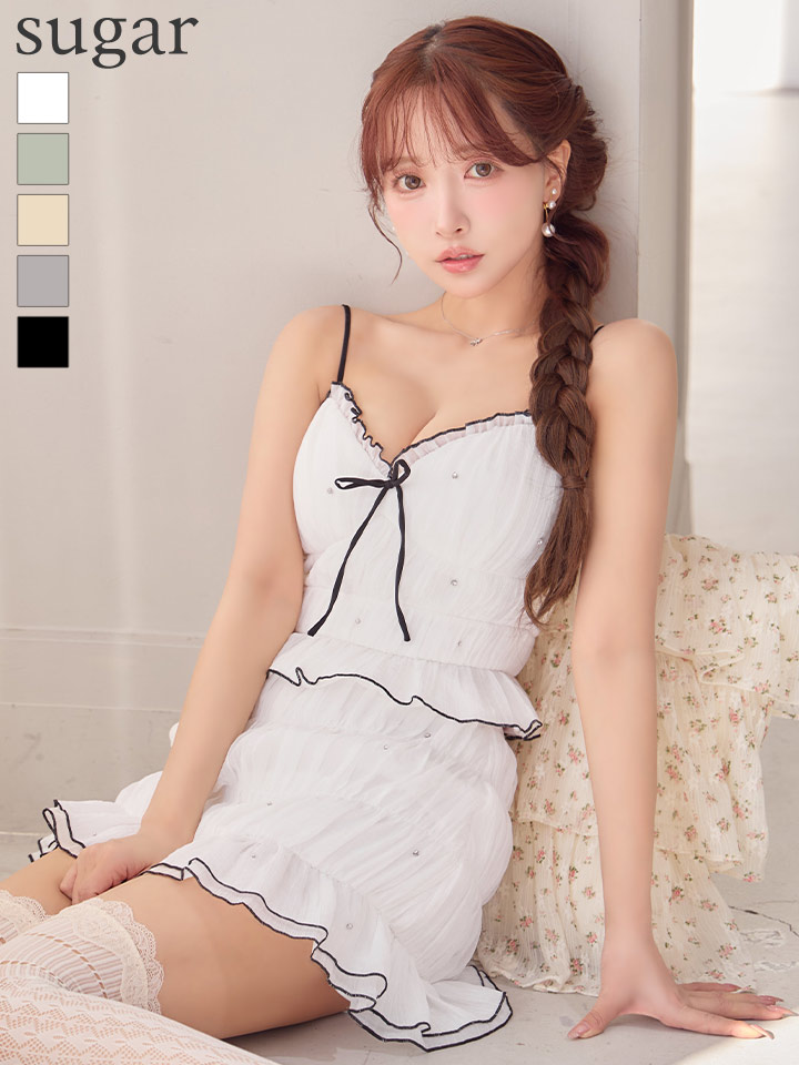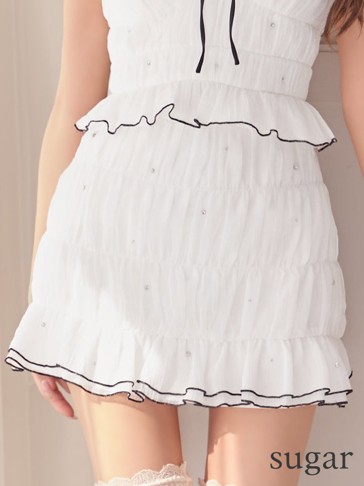 - > 【予約商品/4月中旬発送予定】XSサイズあり【ROBE de FLEURS/ローブドフルール】ビジュー/ ラメシフォン/ リボン/ セットアップ/ ティアード/ ミニドレス/ キャバドレス[OF08]