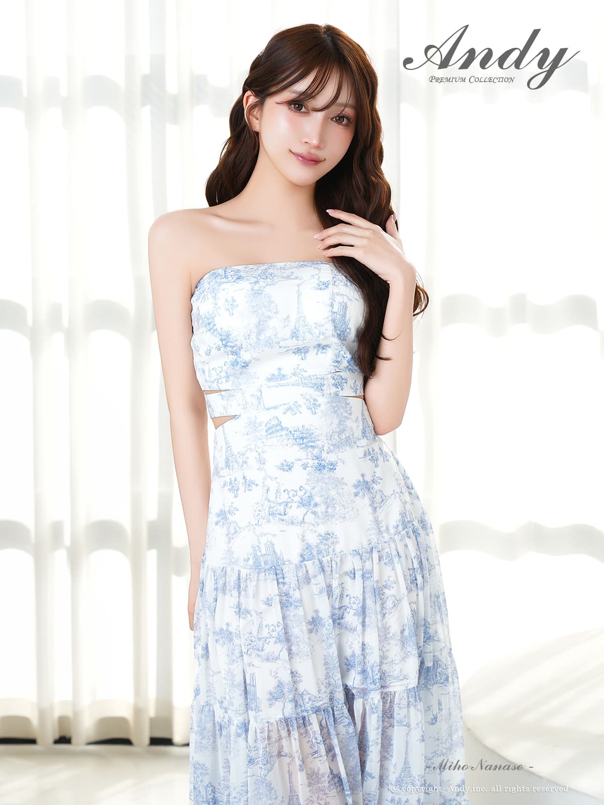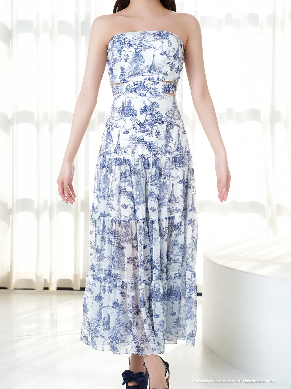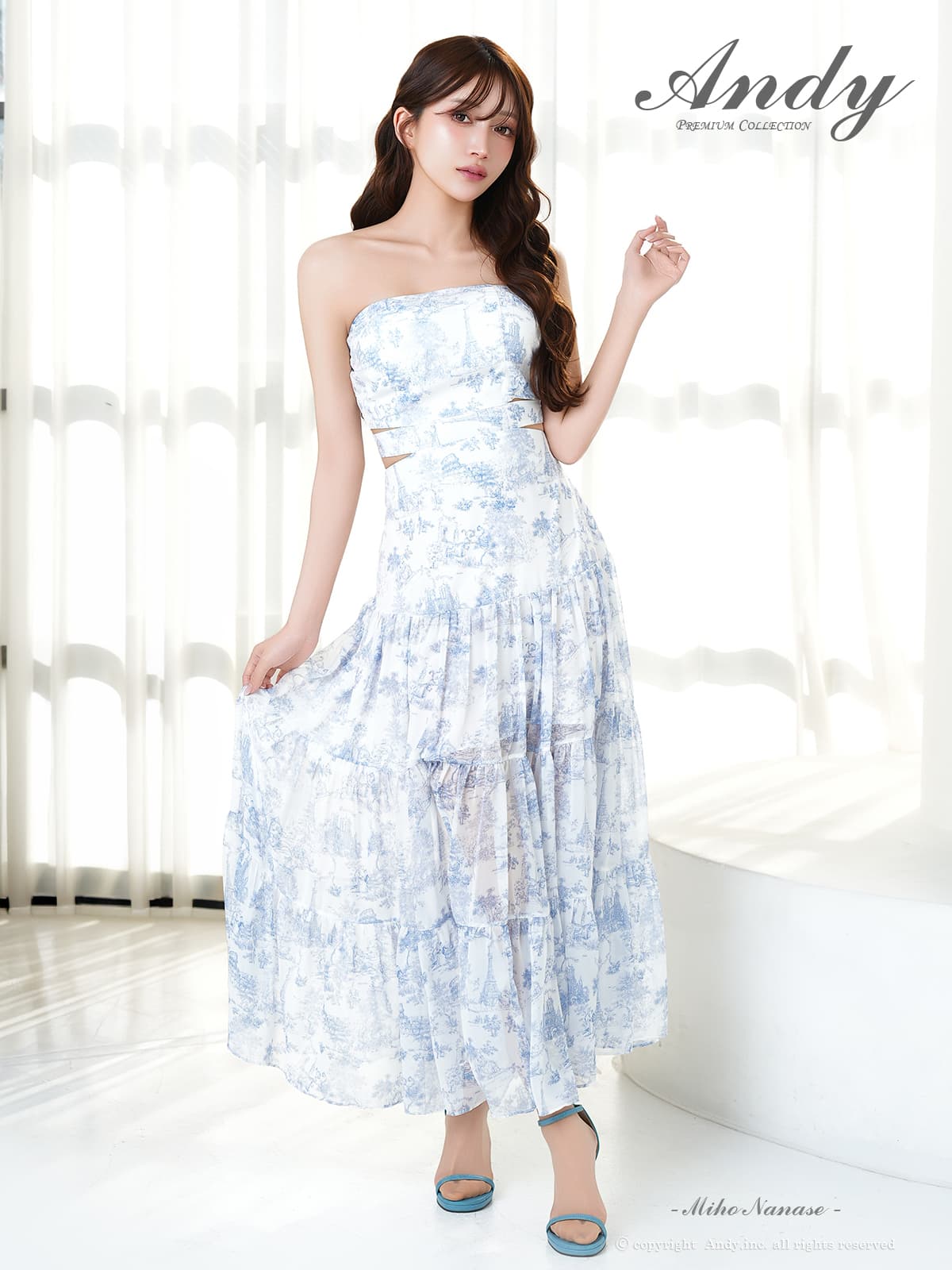 XSサイズあり【ANDY/アンディ】ベアトップ/ ウエストカット/ ノースリーブ/ 総柄/ リボン/ Aライン/ フレア/ ワンピース/ ロングドレス/ キャバドレス[OF05] [ON3067-WxNV-S260411]