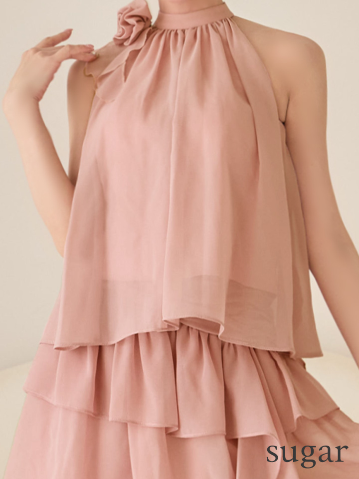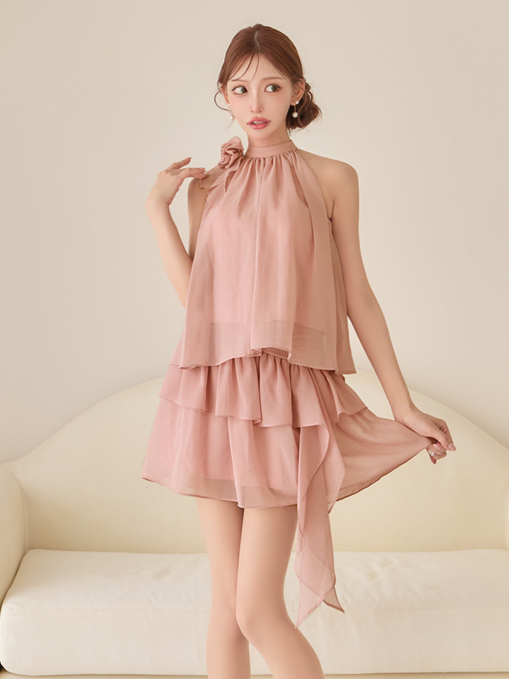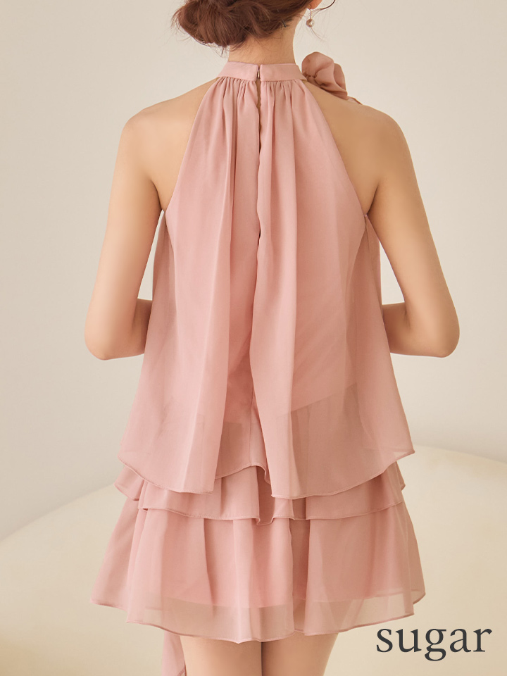 ホルターネックでスッキリと華奢魅せ効果抜群のフレアミニセットアップ♡