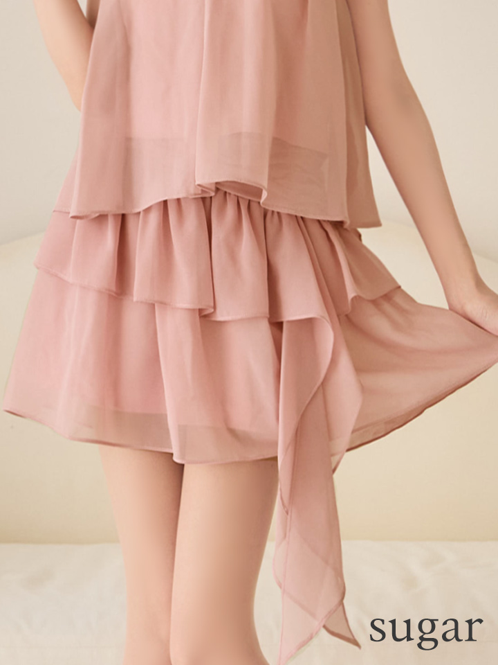 - > 【予約商品/4月下旬発送予定】XSサイズあり【IRMA/イルマ】ブローチ付/ シフォン/ フリルスカート/ 2段フリル/ ティアード/ アメリカンスリーブ/ ノースリーブ/ フレア/ セットアップ/ ミニドレス/ キャバドレス[OF2A]