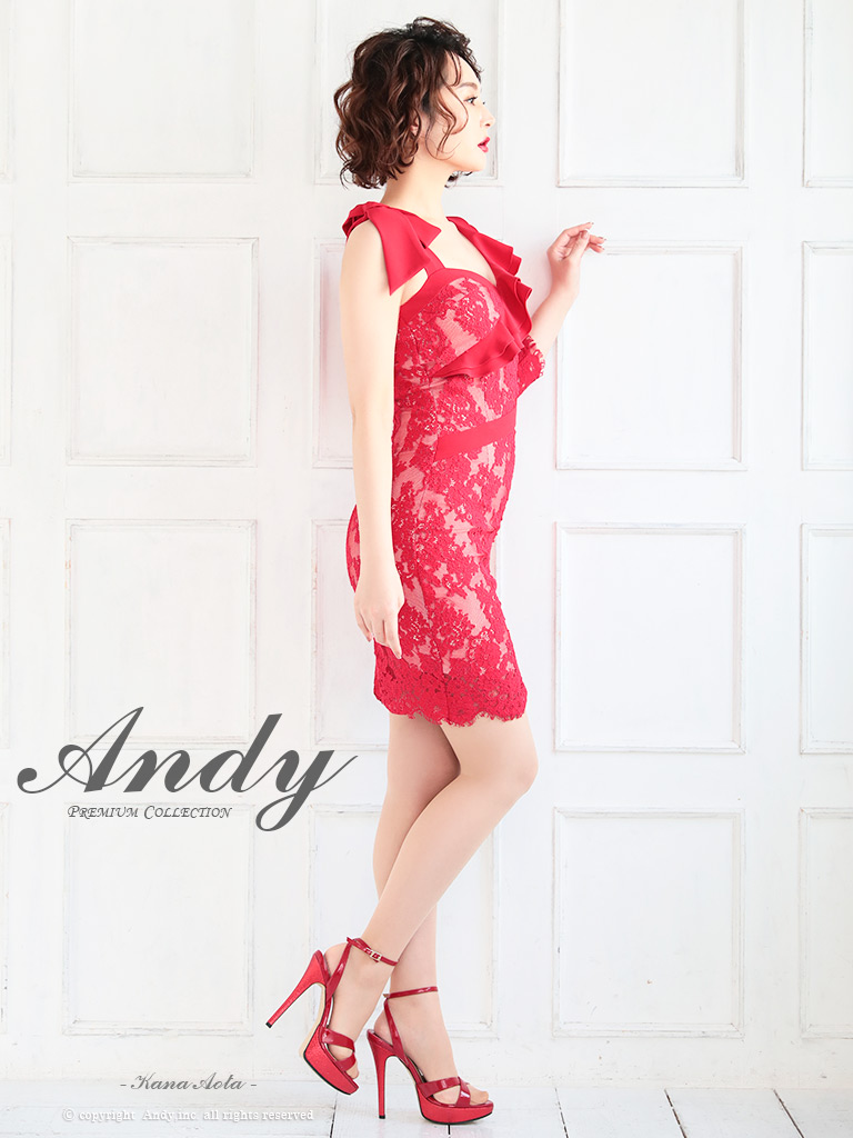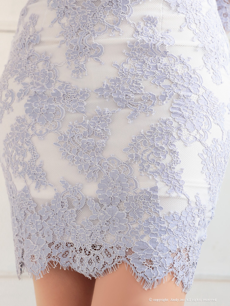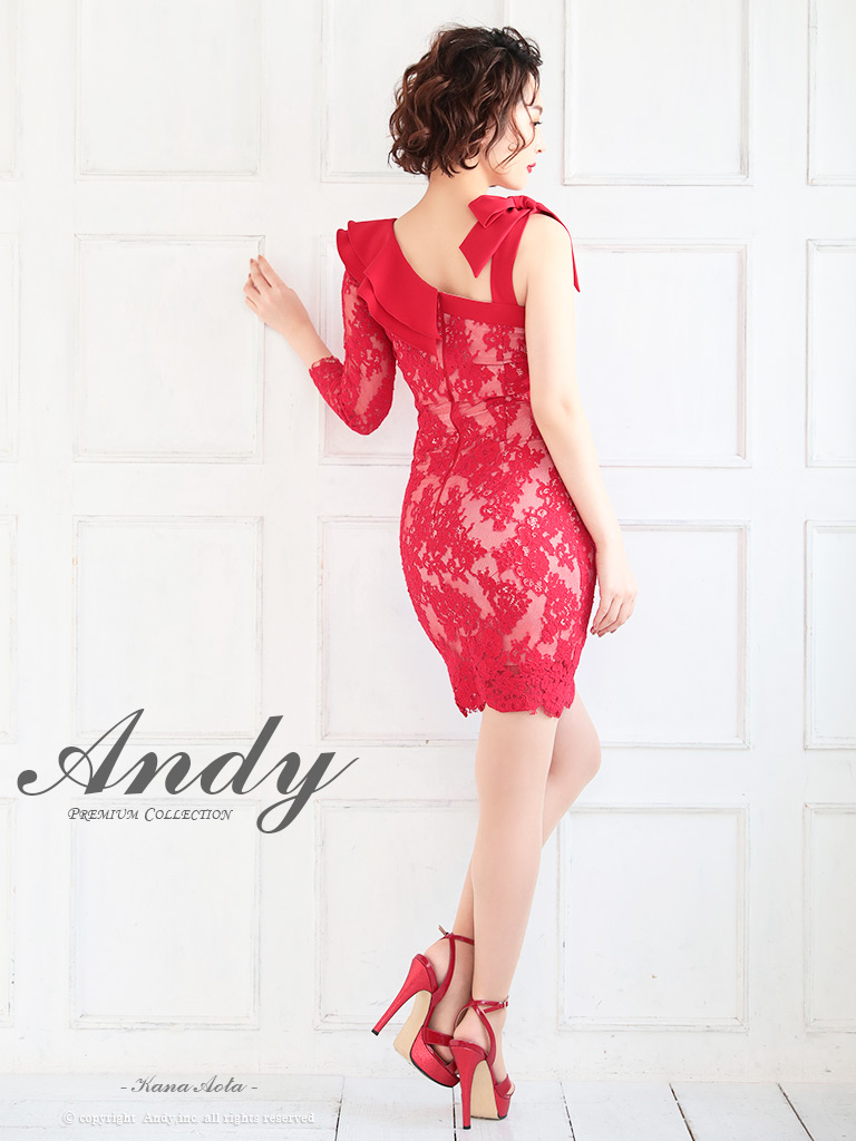 - > 【ANDY/アンディ】総レース/ ショルダーリボン/ フリル/ アシンメトリー/ スカラップレース/ 七分袖/ シアー/ タイト/ ミニドレス/ キャバドレス[OF05]