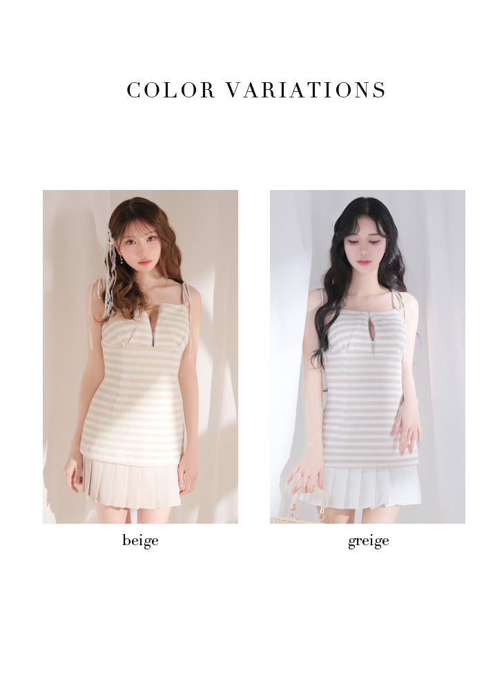 XSサイズあり【ROBE de FLEURS/ローブドフルール】ニット/ ボーダー/ ショルダーリボン/ プリーツ/ バイカラー/ フレア/ ミニドレス/ キャバドレス[OF08] [FM4661-BE-S260414]