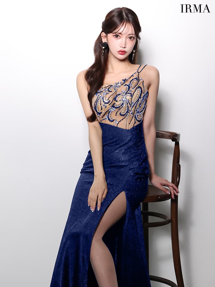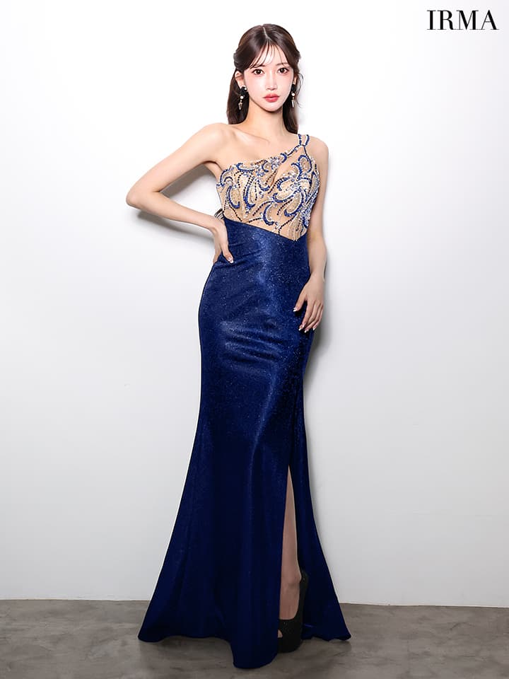【IRMA/イルマ】マーメイド/ スパンコール/ ビジュー/ ラメニット/ 刺?/ ワンショルダー/ スリット/ シアー/ ハイウエスト/ スピンドル/ ロングドレス/ キャバドレス long[OF2A]