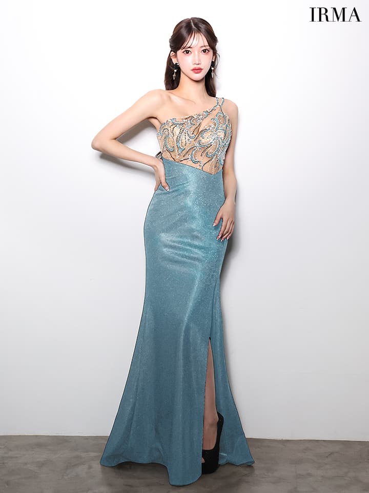 【IRMA/イルマ】マーメイド/ スパンコール/ ビジュー/ ラメニット/ 刺?/ ワンショルダー/ スリット/ シアー/ ハイウエスト/ スピンドル/ ロングドレス/ キャバドレス long[OF2A] [61086-IR-IrisGY-2604]