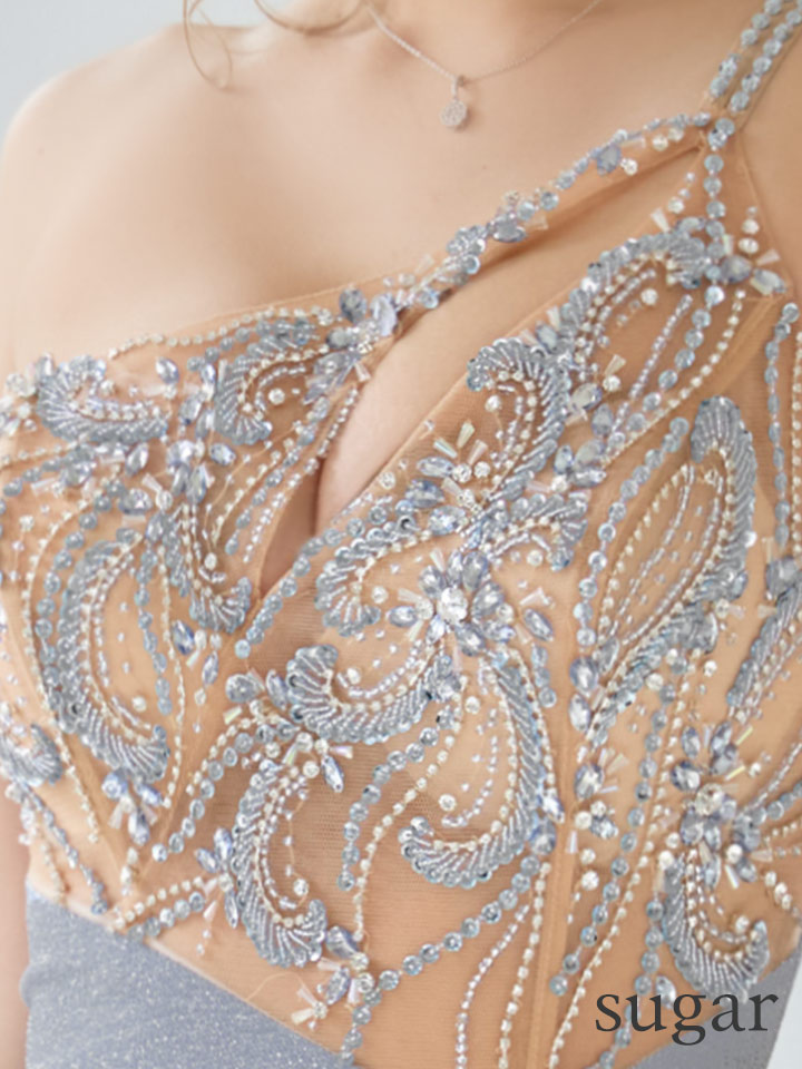 【IRMA/イルマ】マーメイド/ スパンコール/ ビジュー/ ラメニット/ 刺?/ ワンショルダー/ スリット/ シアー/ ハイウエスト/ スピンドル/ ロングドレス/ キャバドレス long[OF2A]