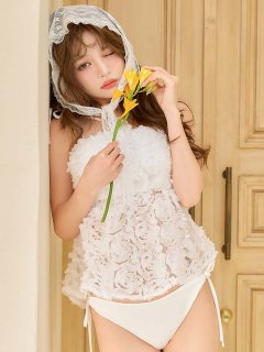 【ビキニ】【水着】チュール花柄トップス付きビキニ 3点セット [FB01]【予約 / 6月上旬発送予定】