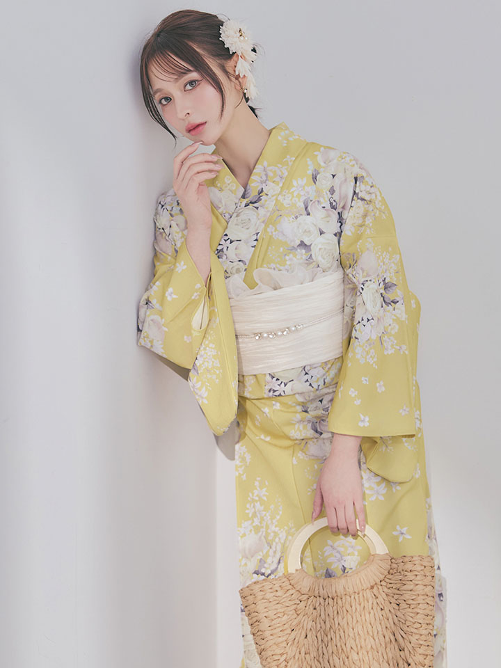 送料無料!【即日発送】マスタードフラワー浴衣【浴衣3点セット 浴衣/帯/下駄】[OF04] [Y-9419-ok-Y-F-26IE-260417]