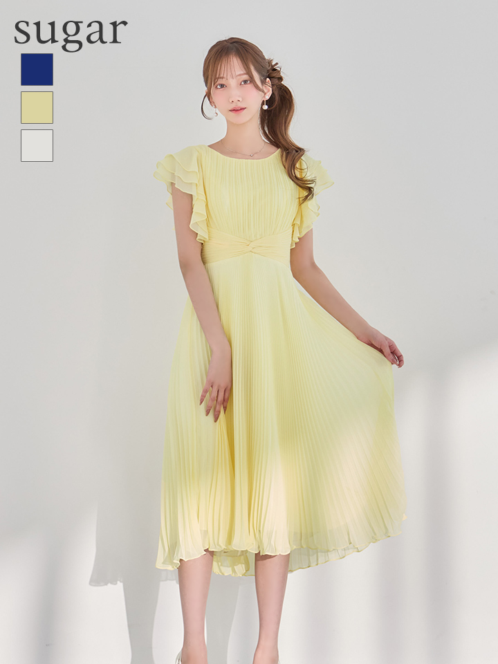 - > XSサイズあり【JEAN MACLEAN/ジャンマクレーン】シフォン/ ショルダーフリル/ フレンチスリーブ/ ウエストマーク/ プリーツ/ フレア/ ワンピース/ ミディアムドレス/ キャバドレス[OF2A]