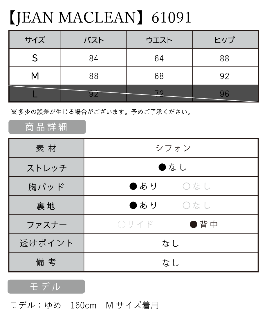 ※商品によって、ホック部分が金具に引っかけるタイプとドレス本体に引っかけるタイプがございます。【JEAN MACLEAN/ジャンマクレーン】