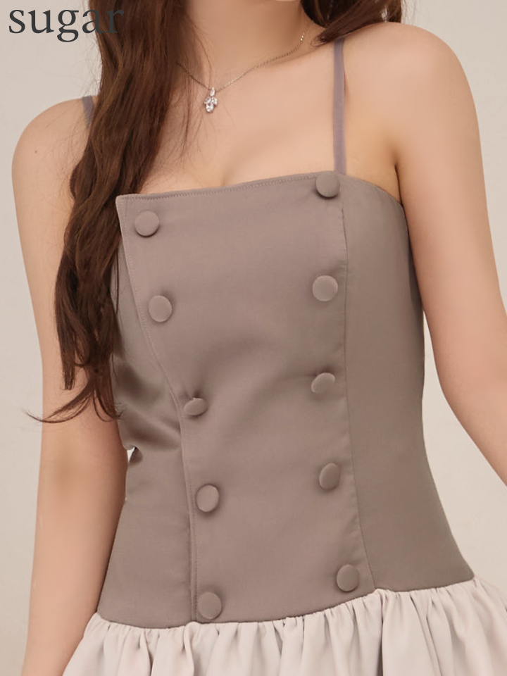 XSサイズあり【IRMA/イルマ】バイカラー/ アシメ/ 無地/ サテン/ ティアード/ 2段フリル/ ノースリーブ/ キャミソール/ フリル/ フレア/ ミニドレス/ キャバドレス[OF2A] [61072-IR-DKGY-S260417]