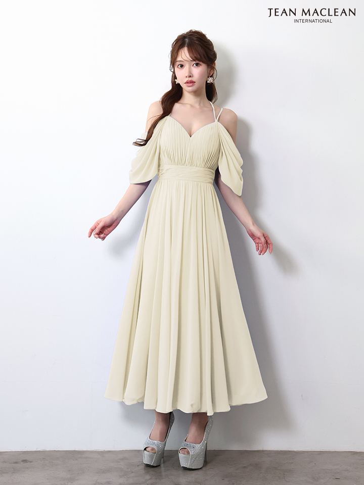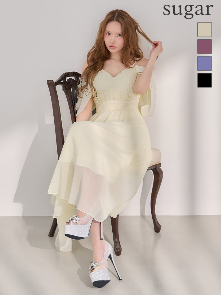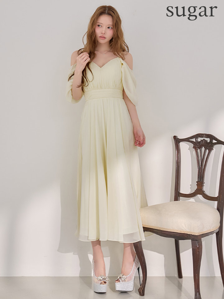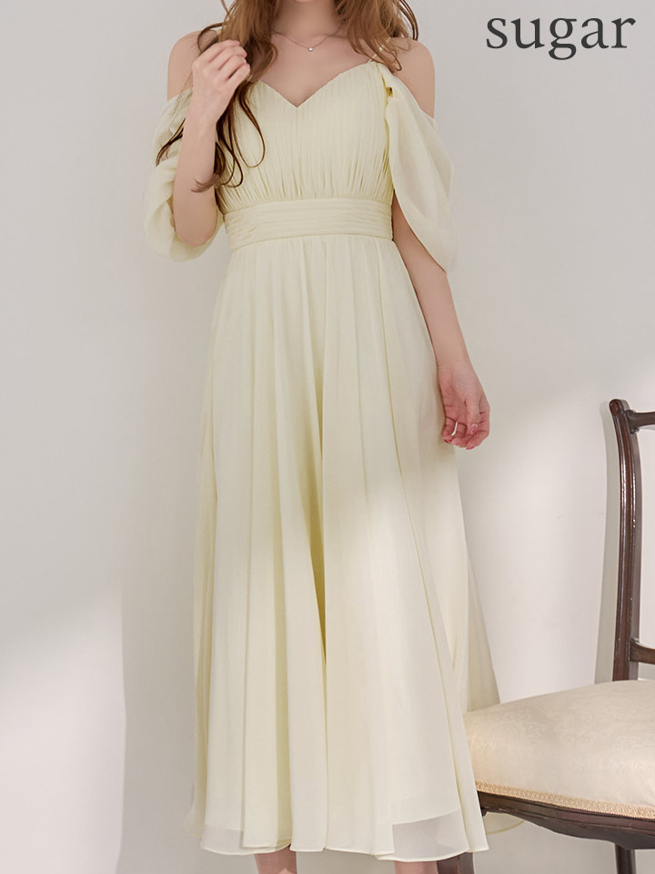 マキシ丈のシフォンが優雅に揺れるミディアムドレス♡